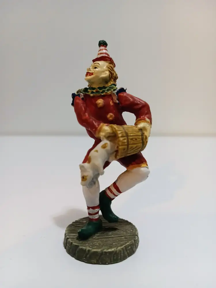 Funny Little Pig Jumps Thru the Barrel as Part of This Charming Clown Act! Very Nice Condition! Made of metal; 3" T x 1.25 W x 1" Base