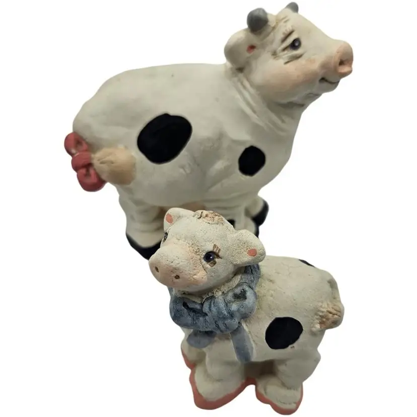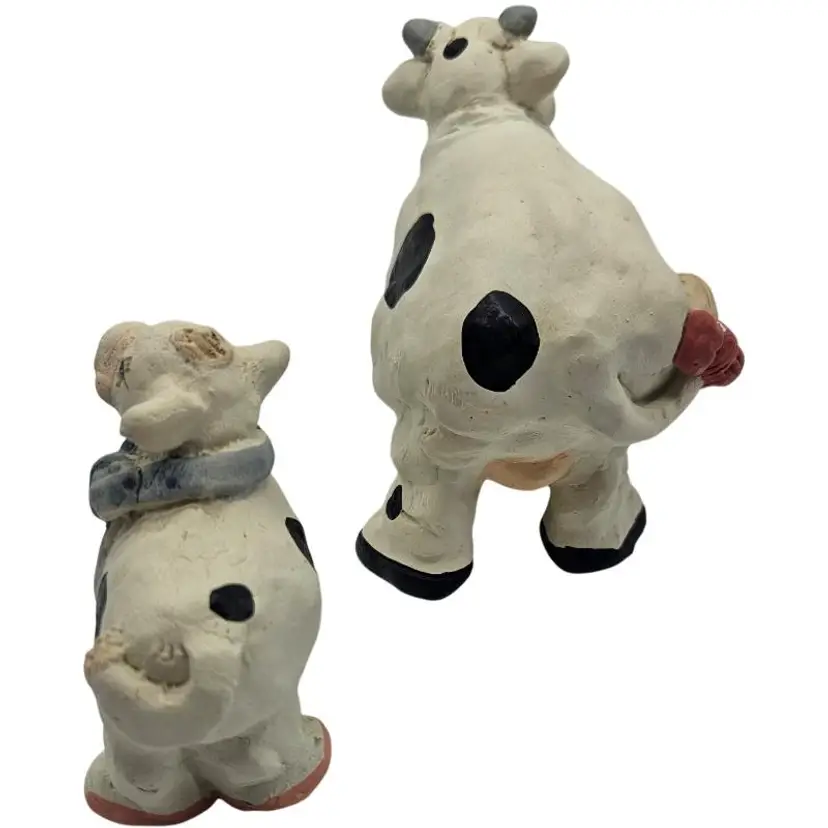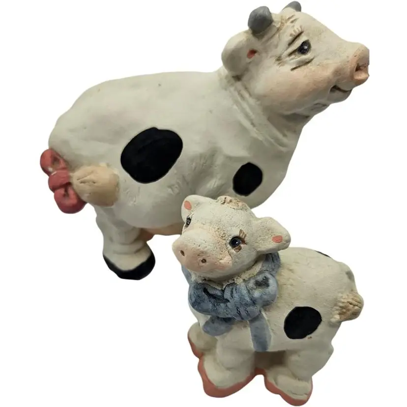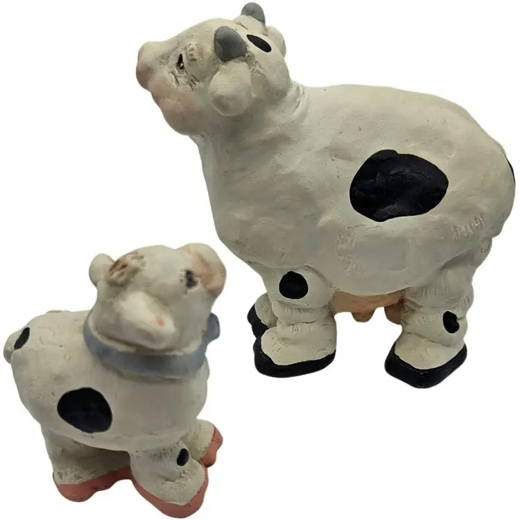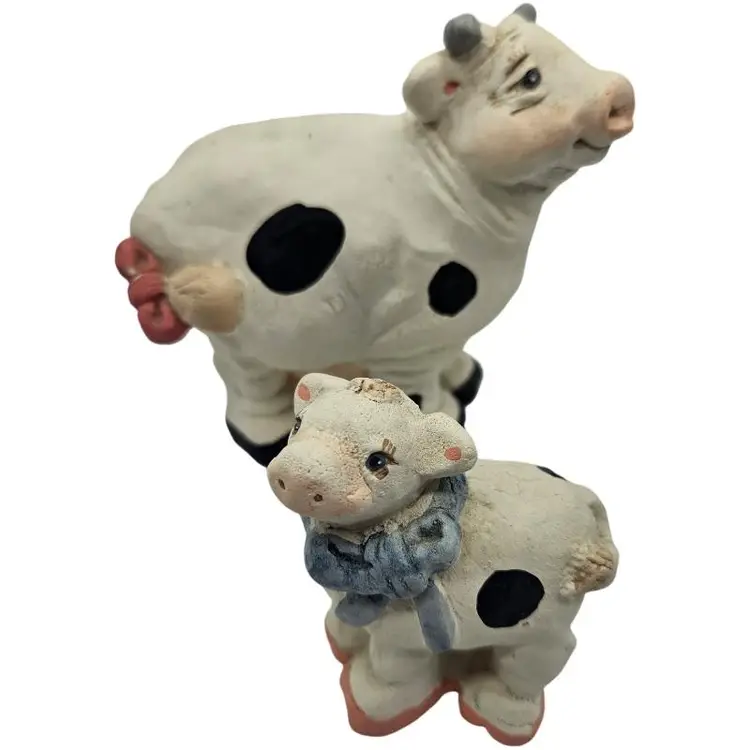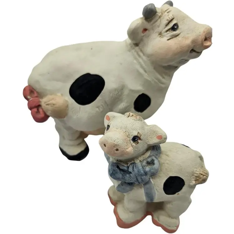 Adorable cow figurines. Perfect for home decor. Adds a touch of whimsy.