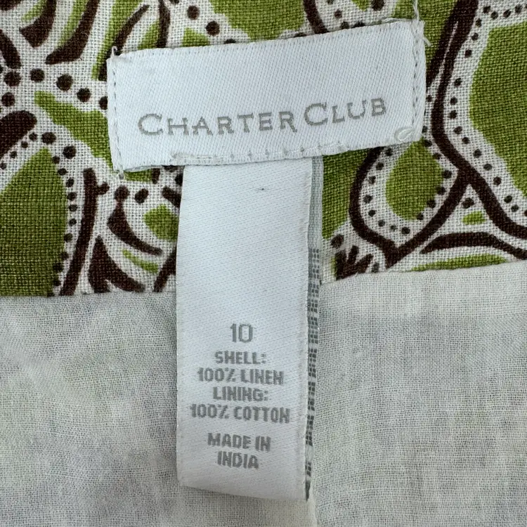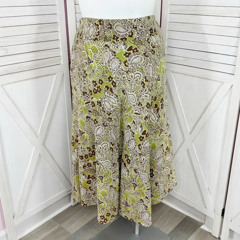 Charter Club Linen Paisley Floral Tropical Midi Skirt Green Brown