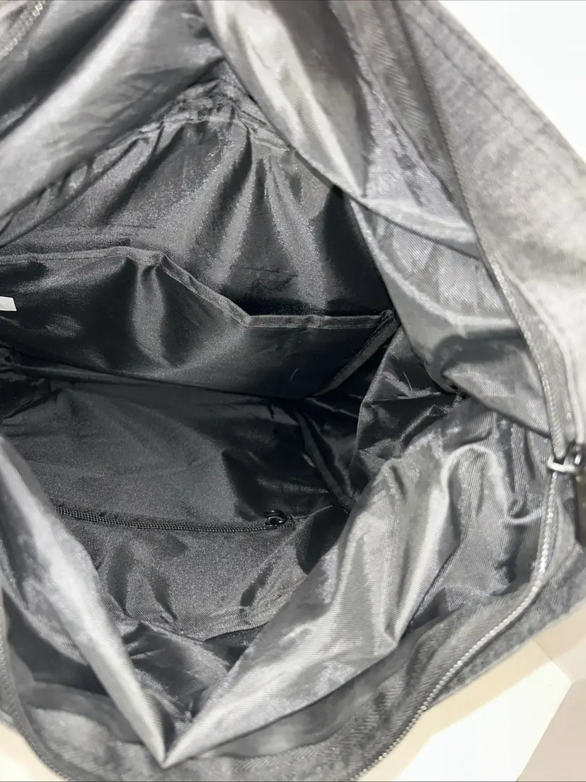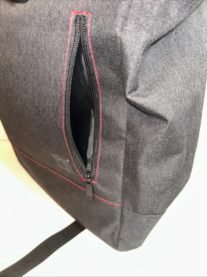 The Chipotle Fold Top Backpack in Charcoal Gray features a laptop sleeve and is branded merchandise for the popular restaurant chain. The backpack is a unique and stylish way to show off your love for Chipotle while keeping your laptop safely stored. The gray color adds a sleek and versatile touch to the design, making it a practical and fashionable accessory for any fan of the fast-food giant.