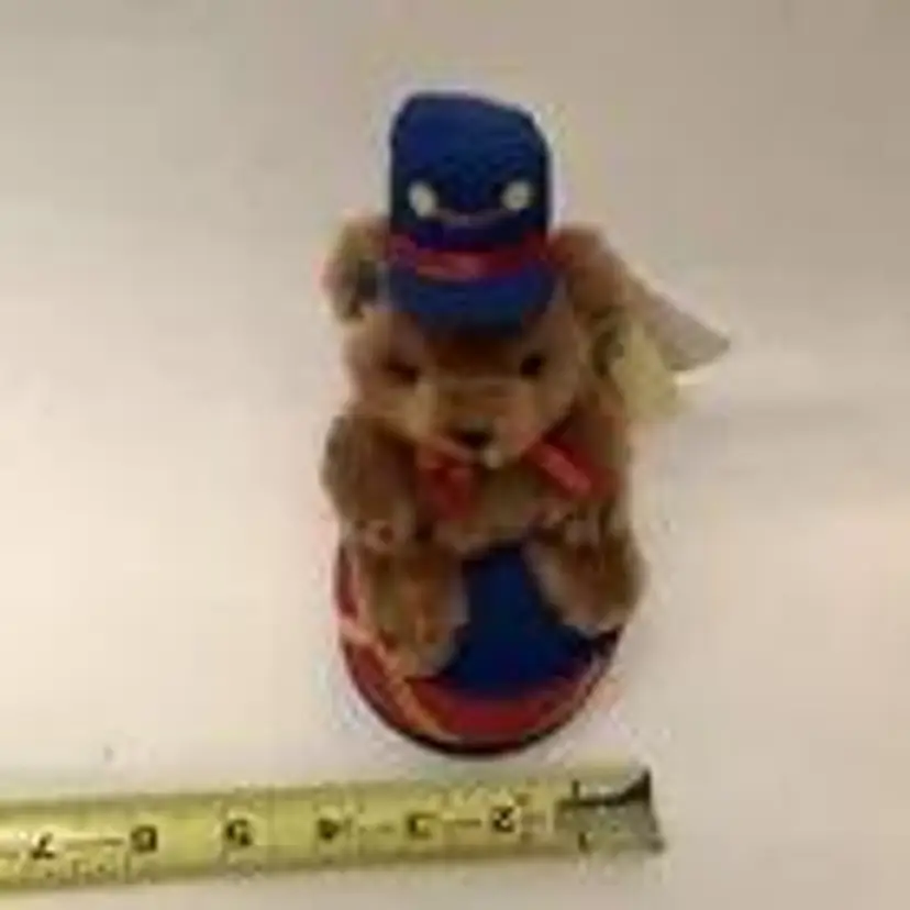 Russ Luv Pets. Berrie Bandy Teddy Brown Bear. Christmas Band Soldier Drummer Plush. with attached Drum and attached hat. With ear Tag (see photos has slight bend in the cardboard tag) Please see manufacture information on tag and ear tag. For size, please see photos with measuring aid. Condition: Used Character: Berrie Bandy Teddy Bear. Size: 8 in Color: multicolor (bear is Brown) Material: Mixed/Plush Animal Species: Bear Vintage:Yes Brand: Russ Bear Color: Brown Type: Plush Bear Animal: Bear Collection: Luv Pets Country/Region of Manufacture: China