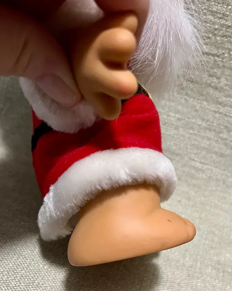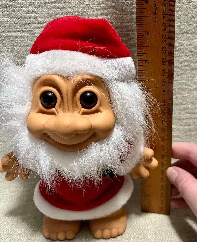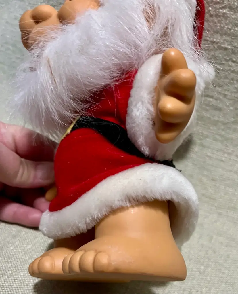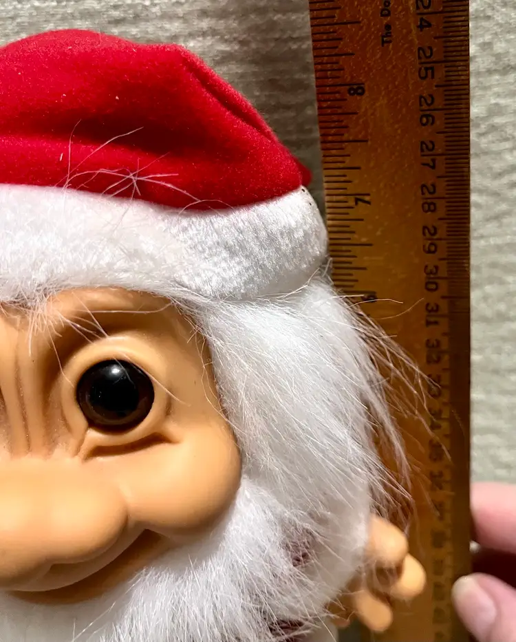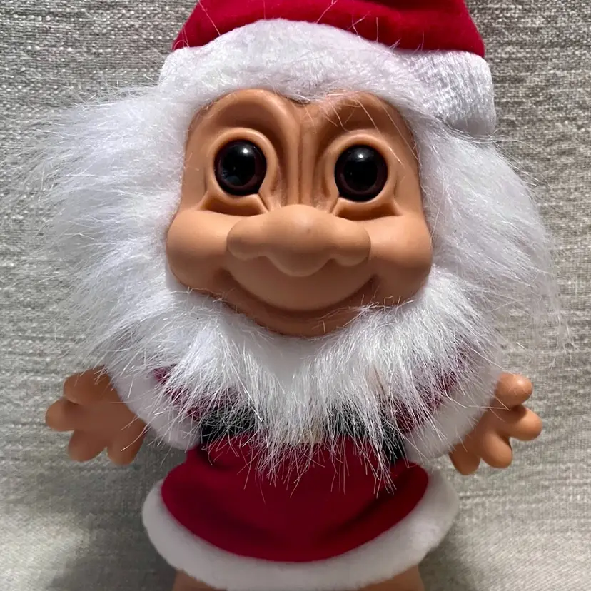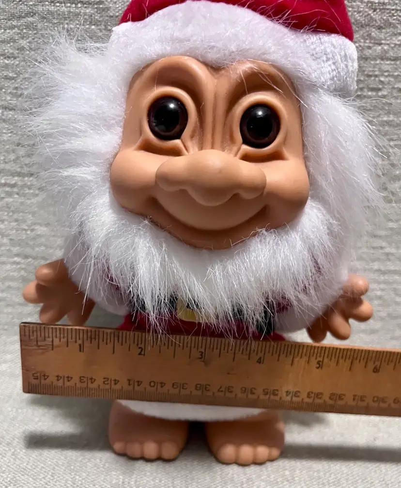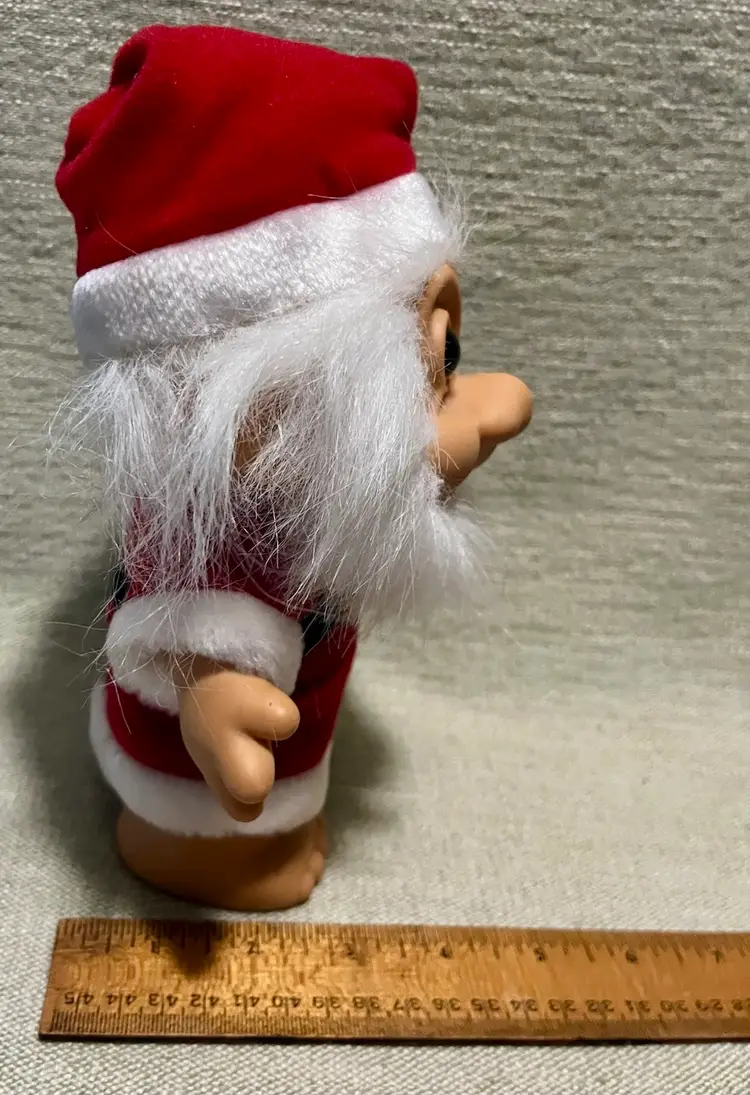 The Christmas Russ Troll 8” Doll in a Santa Claus red suit with a white beard is a charming addition to any holiday display or collection. This troll doll, featuring a light complexion and brown eyes, is part of the Trolls product line by Russ, this collectible item brings a touch of Nordic Scandinavian nostalgia to any space. The 8” doll is made of plastic and weighs 9 ounces, perfect for decorating during the festive season. With its Nordic Scandinavian folkloric Christmas theme, “Russell Berrie ~ During the '60s, Berrie had sold trolls as a representative of Dam Things' official US licensee, Royalty Design. But after Royalty went bankrupt, he began to use Dam Things' original molds to manufacture trolls under his own “Russ Trolls” brand name.”