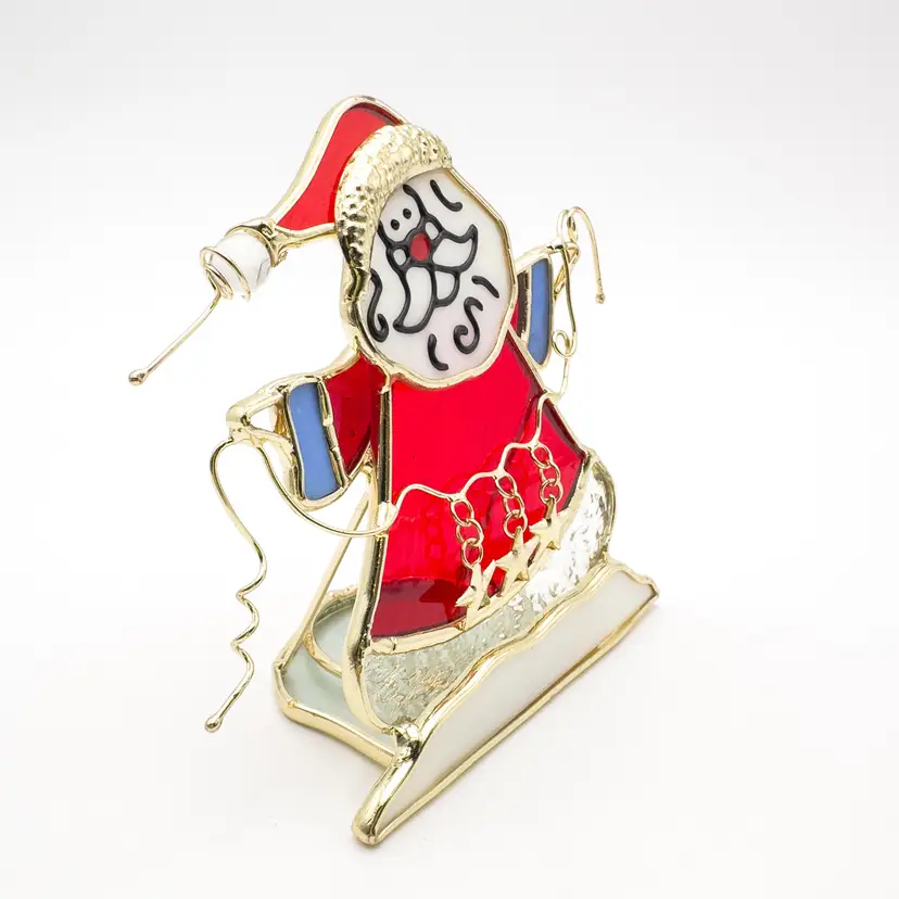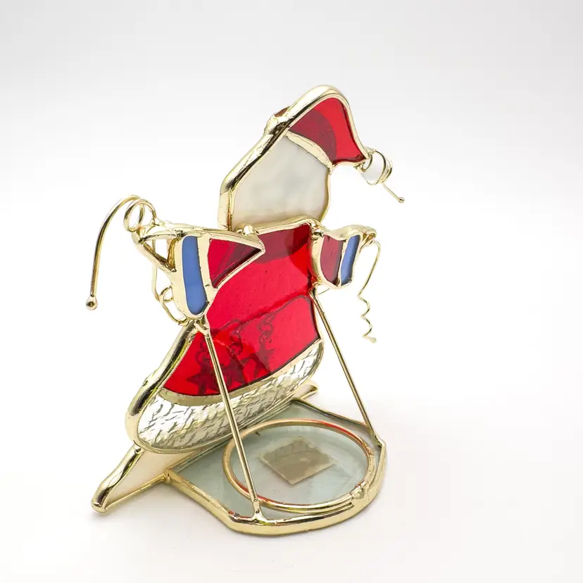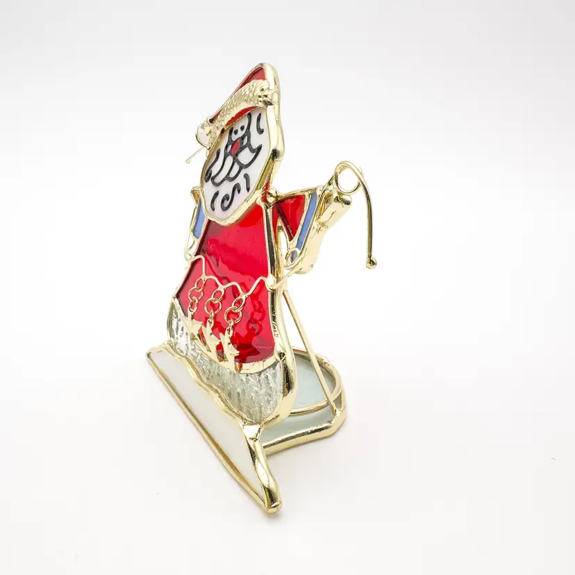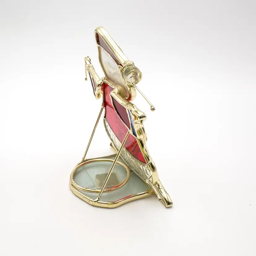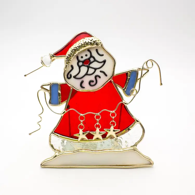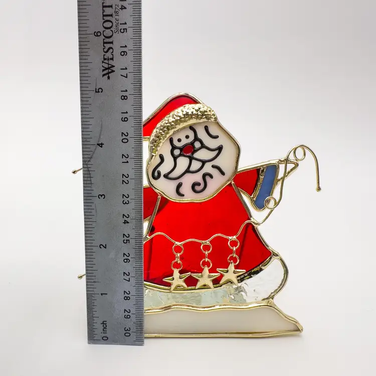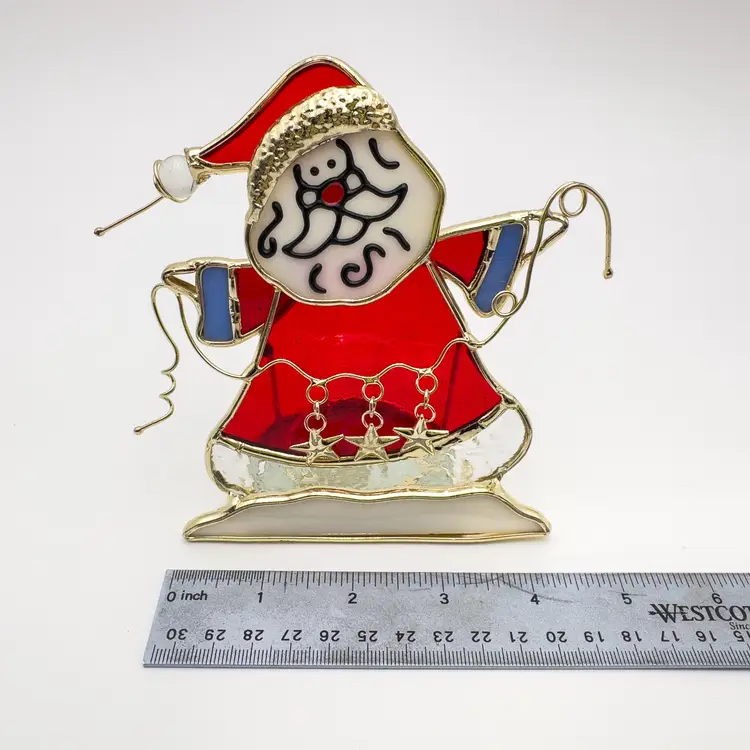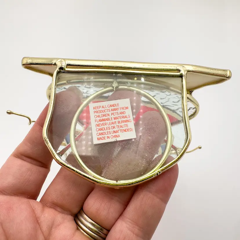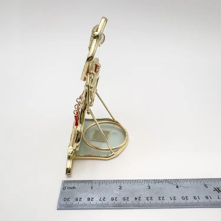 5" H x 4.25" W Very good condition, minimal signs of wear appropriate for age and use, see all photos Gold tone with stained class