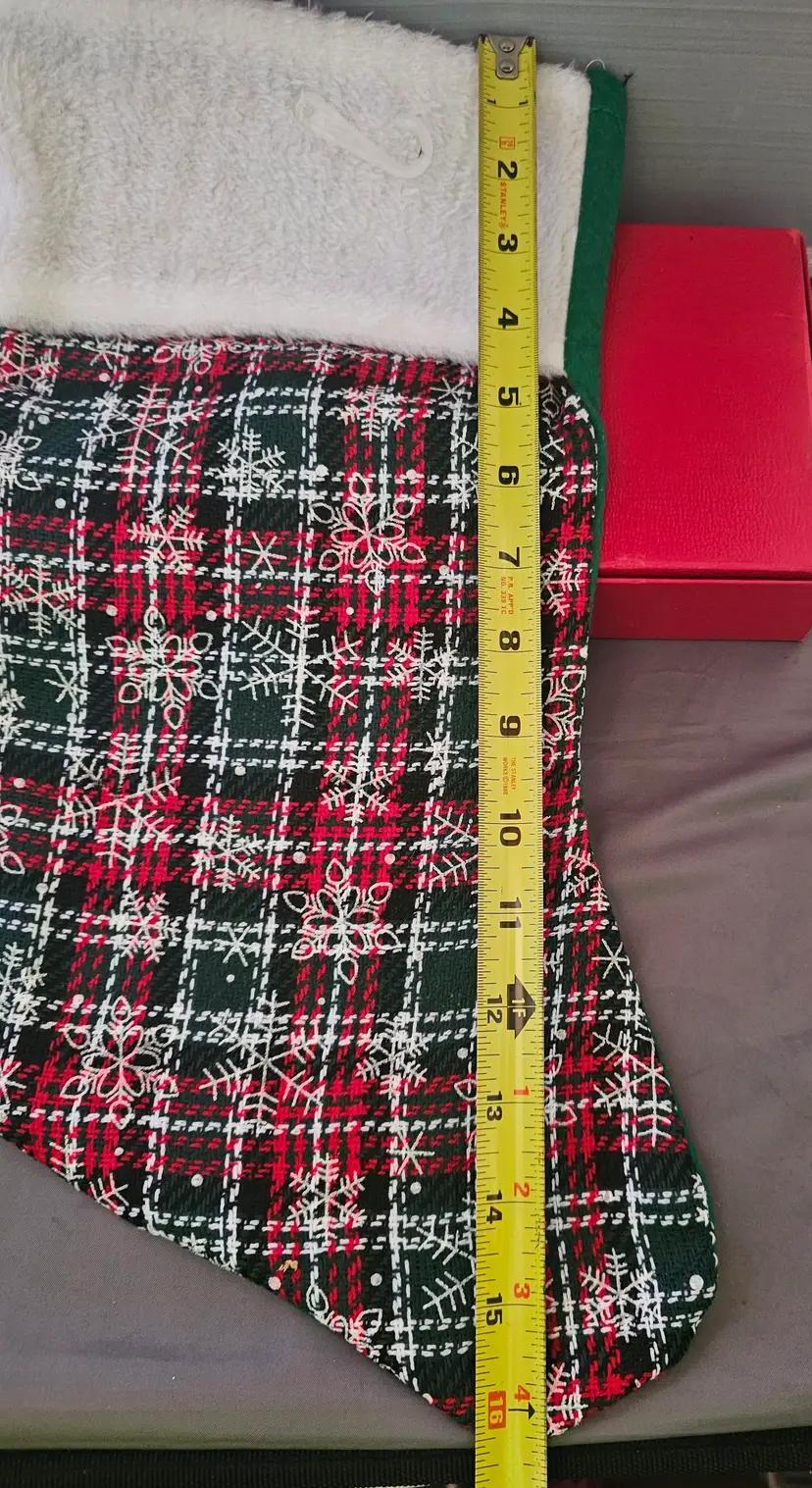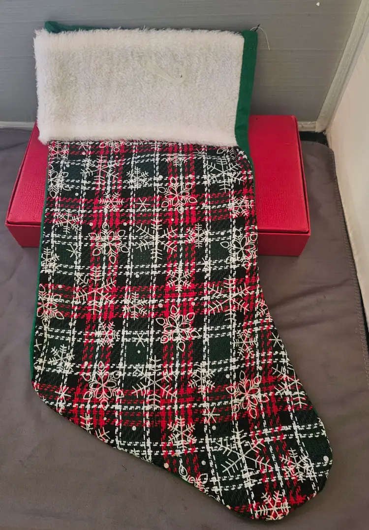 Christmas Stocking Red and Green Plaid Snowflake Design -Lot of 2 -