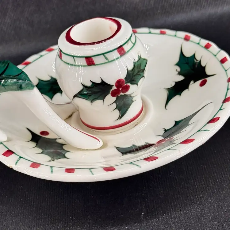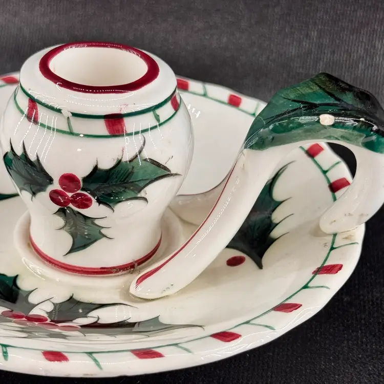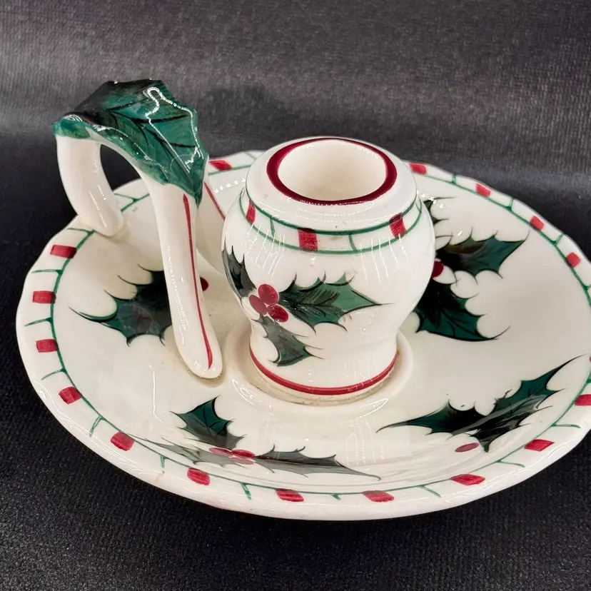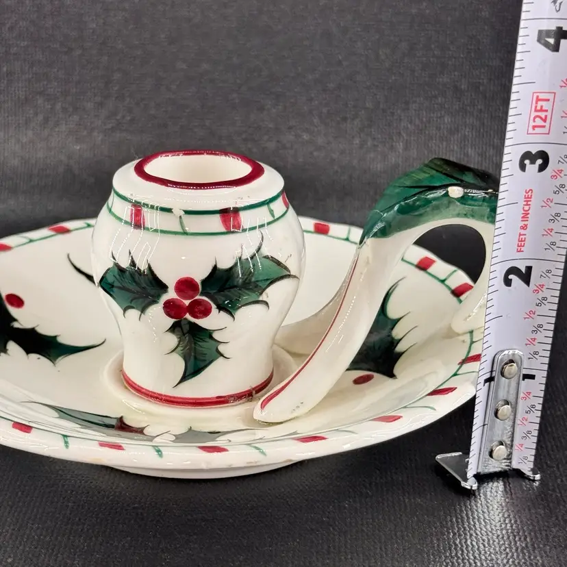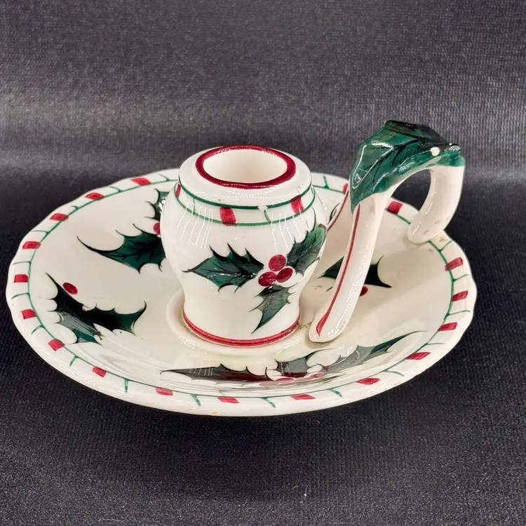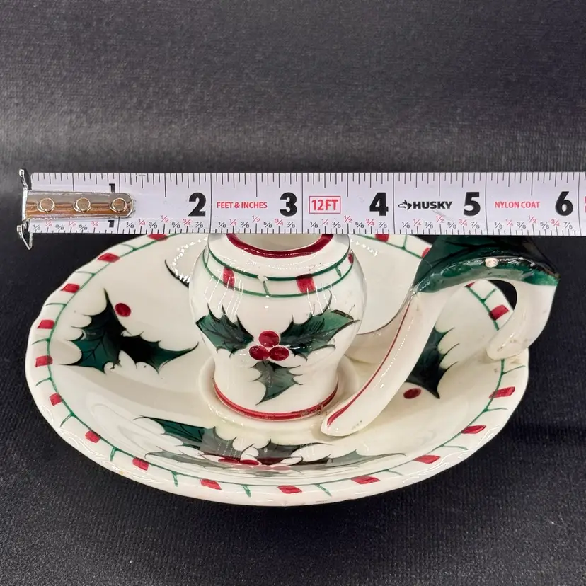 Vintage Lefton Christmas Holly Berry Chamberstick Candle Holder
