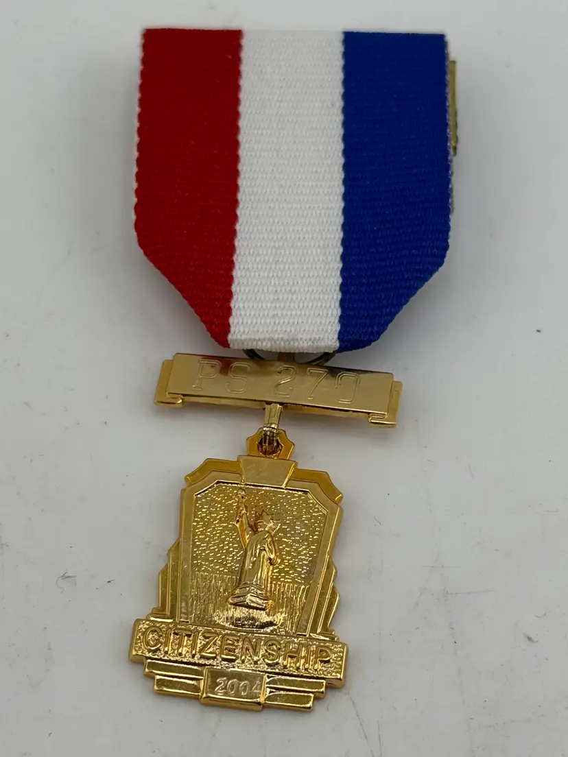 Citizenship 2004 medal PS 270 Ribbon Pin. Citizenship 2004 medal ps 270 with red white and blue ribbon pin. MN54GH.
