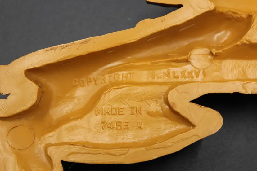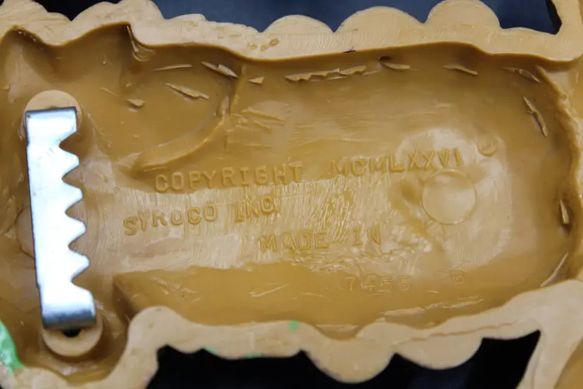 Clearly marked on the back, 1974. Bright colors and perfect for any vintage style kitchen.