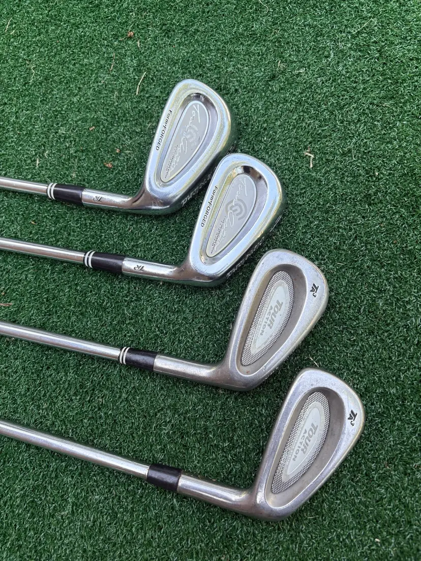 4,5,6,9 irons 4&5 are cast version Dynamic gold S400 shafts New grips 6&9 are form forged Dynamic gold S300 shafts Older swing rite grips Great players iron profile irons