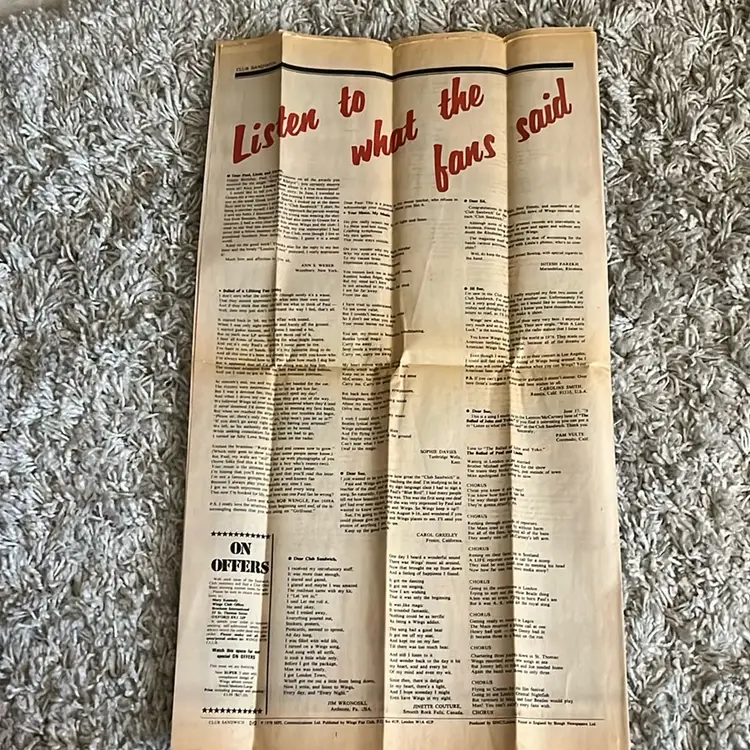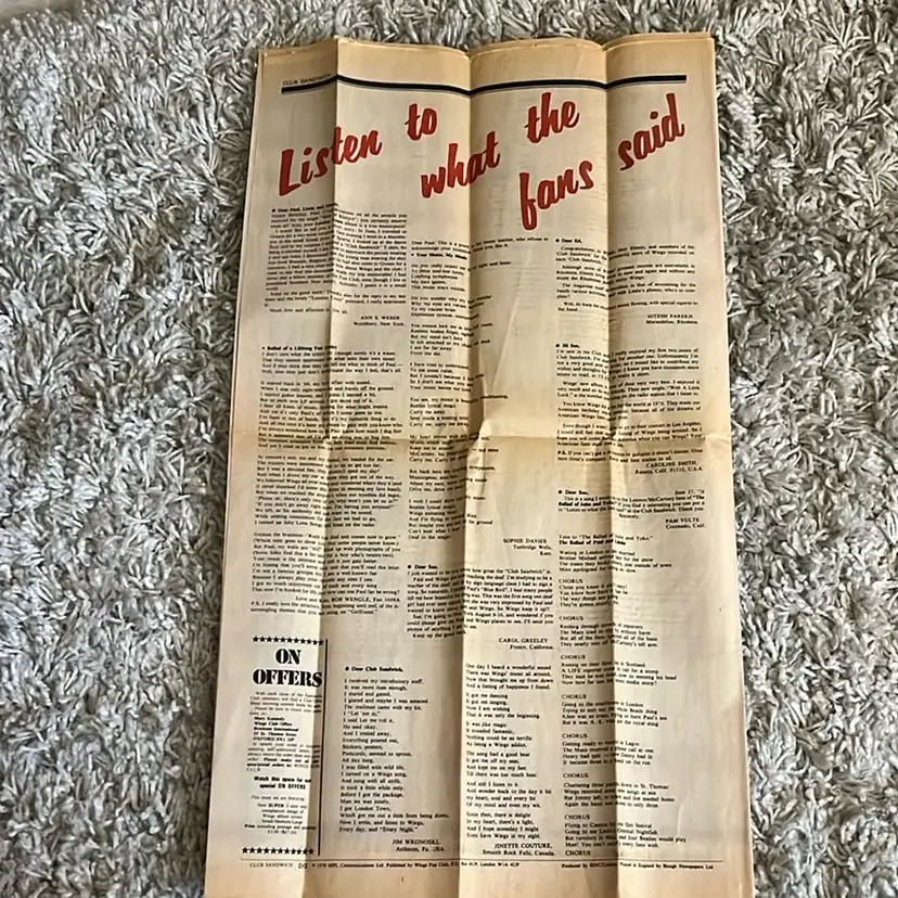 Original club sandwich, wings fun club from June July 1978. Wings in the wild with a gallery corner in the middle. Great pictures and vintage condition.