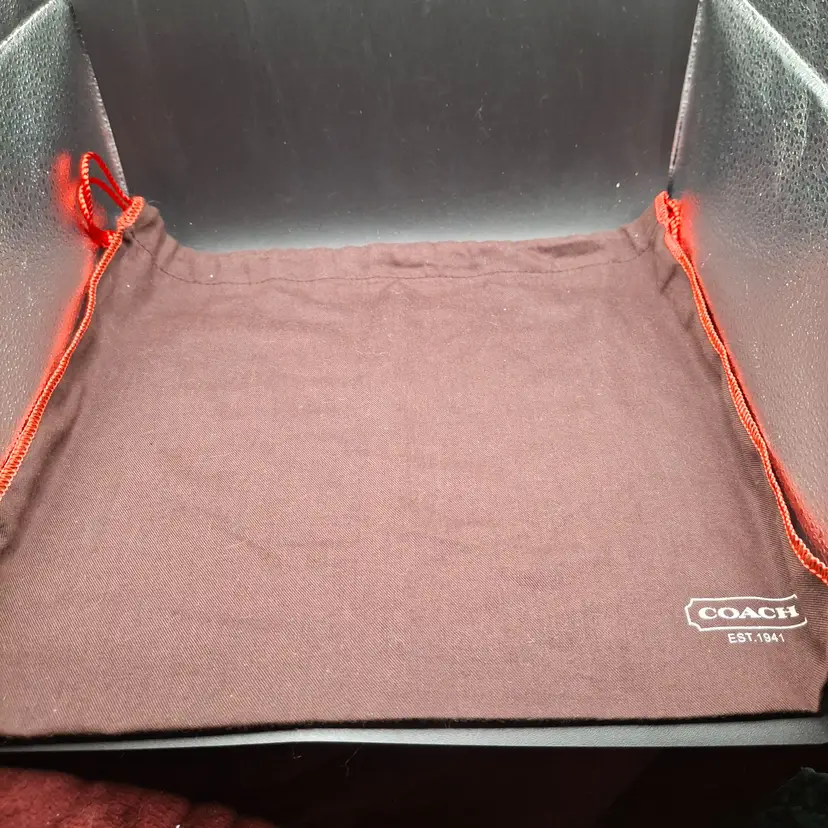 This Coach dust bag provides a stylish storage solution, keeping your valuables safe from dust and scratches. The red trim adds a touch of elegance.