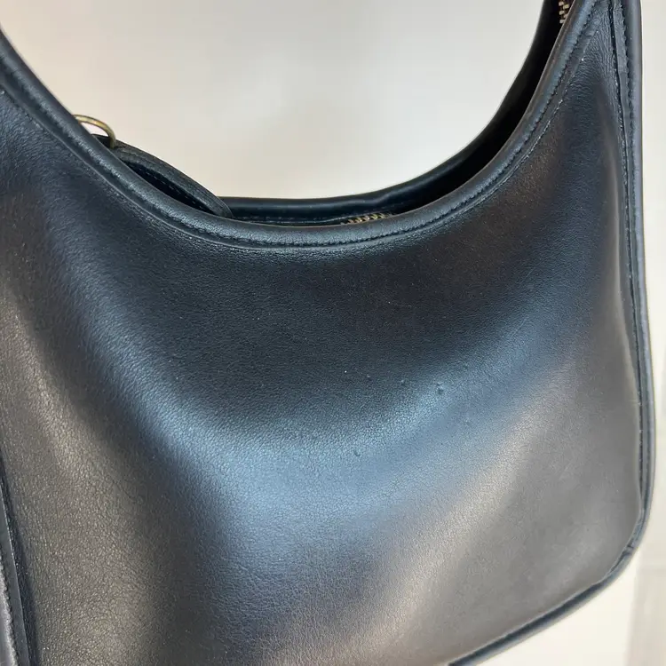 Vintage Coach Ergo Mini Zip Bag 9020 Black Leather Shoulder Purse Handbag Size 9.5 x 7 x 1.75” Preowned item in excellent condition. Cleaned and conditioned for a new owner. From 1997.