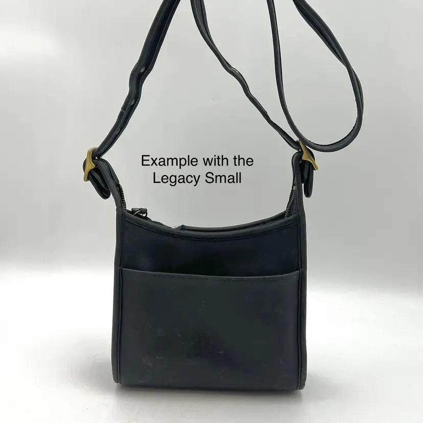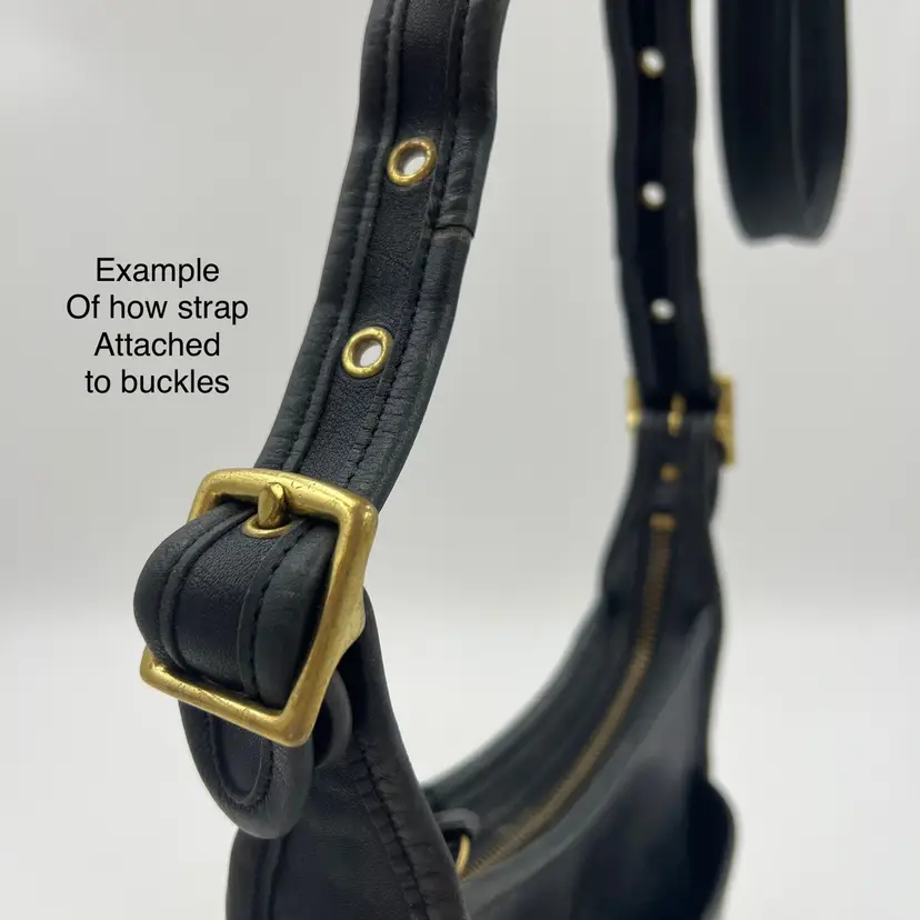 Vintage Coach Black Leather Buckle Replacement Handbag Shoulder Strap Originally a strap for a Legacy Small Zip, but can be used on any style with a 1 inch buckle for a strap. Last two photos are examples of how the strap attaches to a Legacy Small Zip purse and is supposed to used. This listing is for a replacement strap only. Strap was harvested from an authentic 2000 Legacy Small Zip bag that was flawed and couldn't be saved. Strap has been cleaned and conditioned.