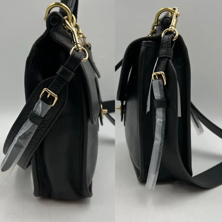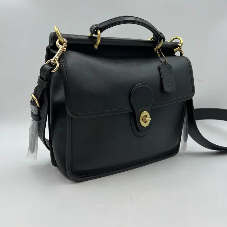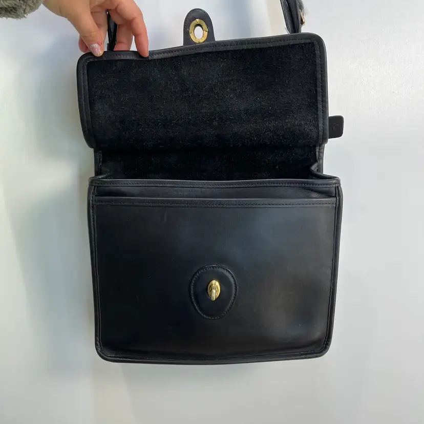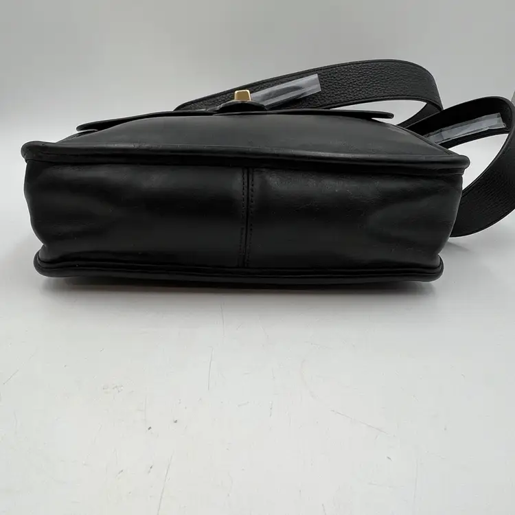 Coach Willis Bag #9927 Black Leather Crossbody Size 9.5 x 7.5 x 3" Drop 24" Preowned item in excellent condition. One exterior back slip pocket. One interior zip pocket. Slip pocket under the flap. Cleaned and conditioned for a new owner. Creed serial number dates this to 2007; most likely a re-release of a classic. Comes with a new replaced crossbody strap from Coach.