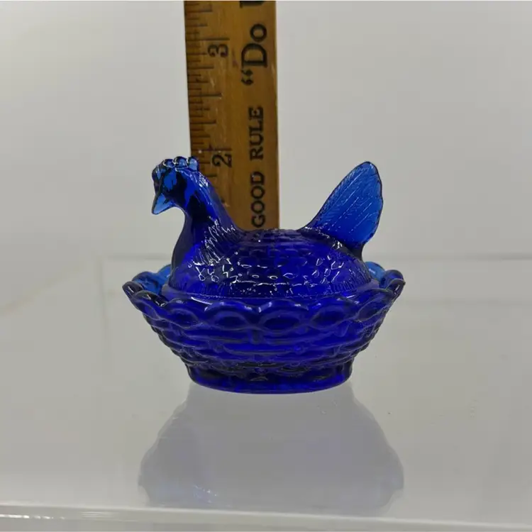Cobalt Blue Boyd Glass 2.5" Miniature Hen on Nest Salt Cellar Trinket Dish