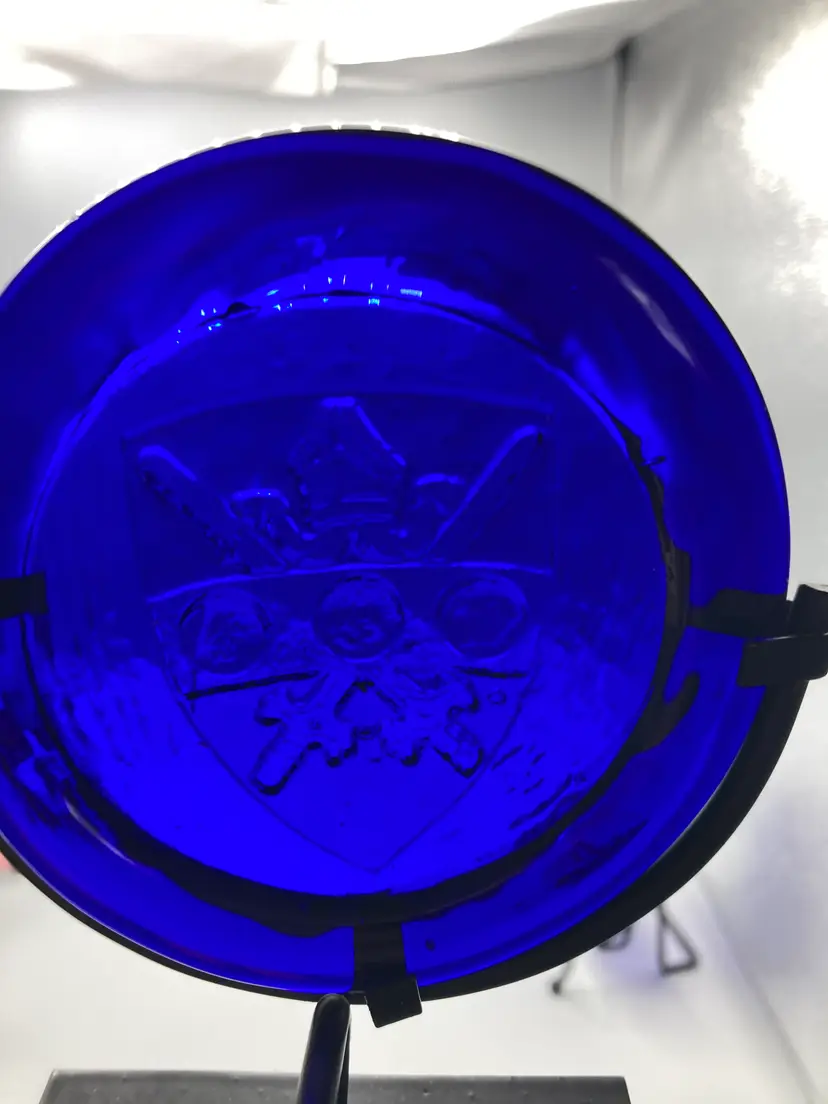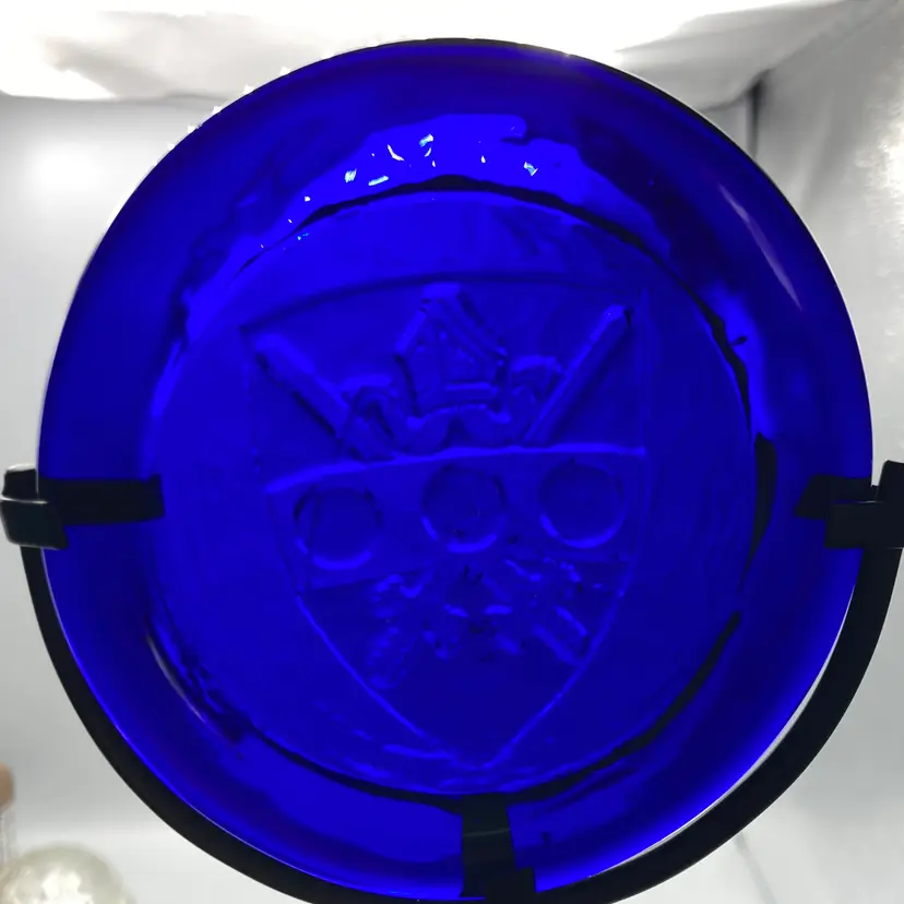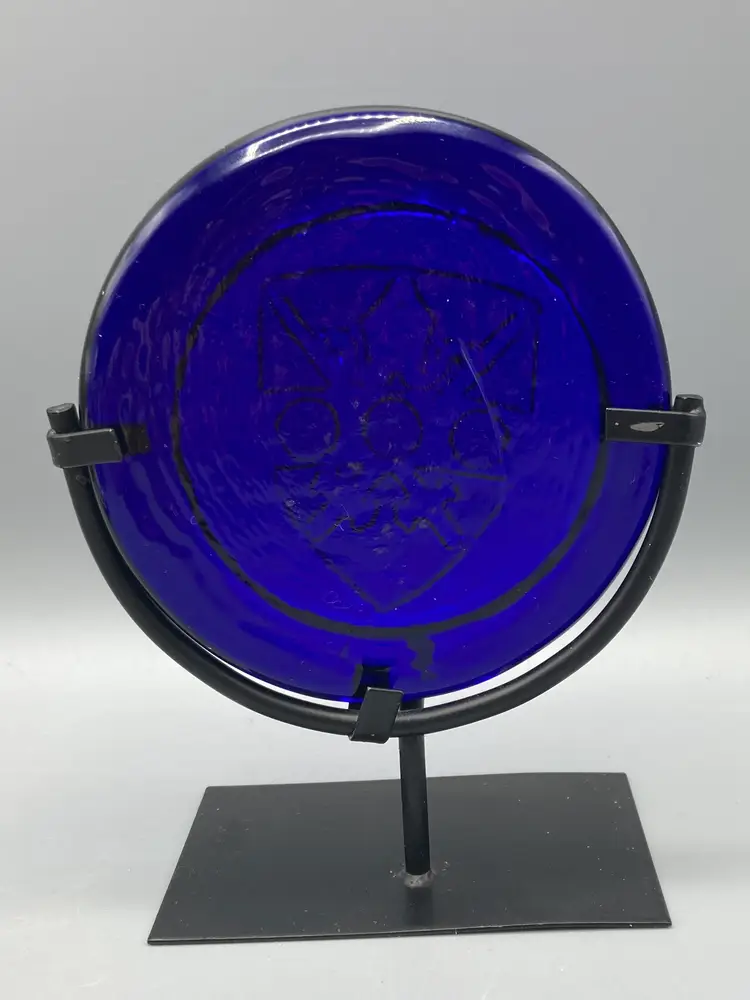 This sun catcher is in good condition. It measures approximately 4" across and 5 1/2" tall with the stand.