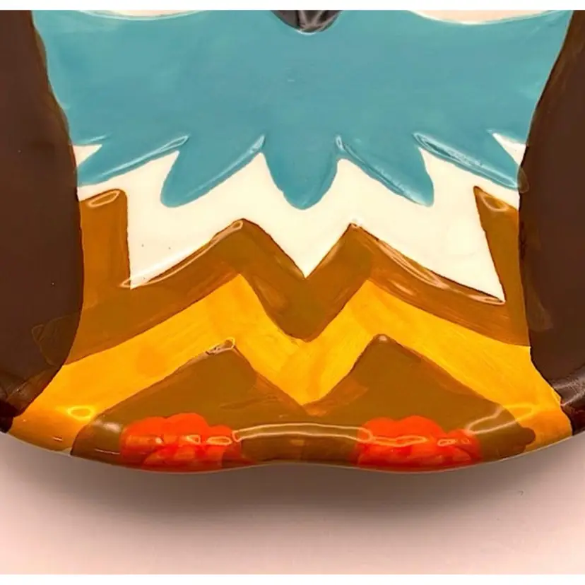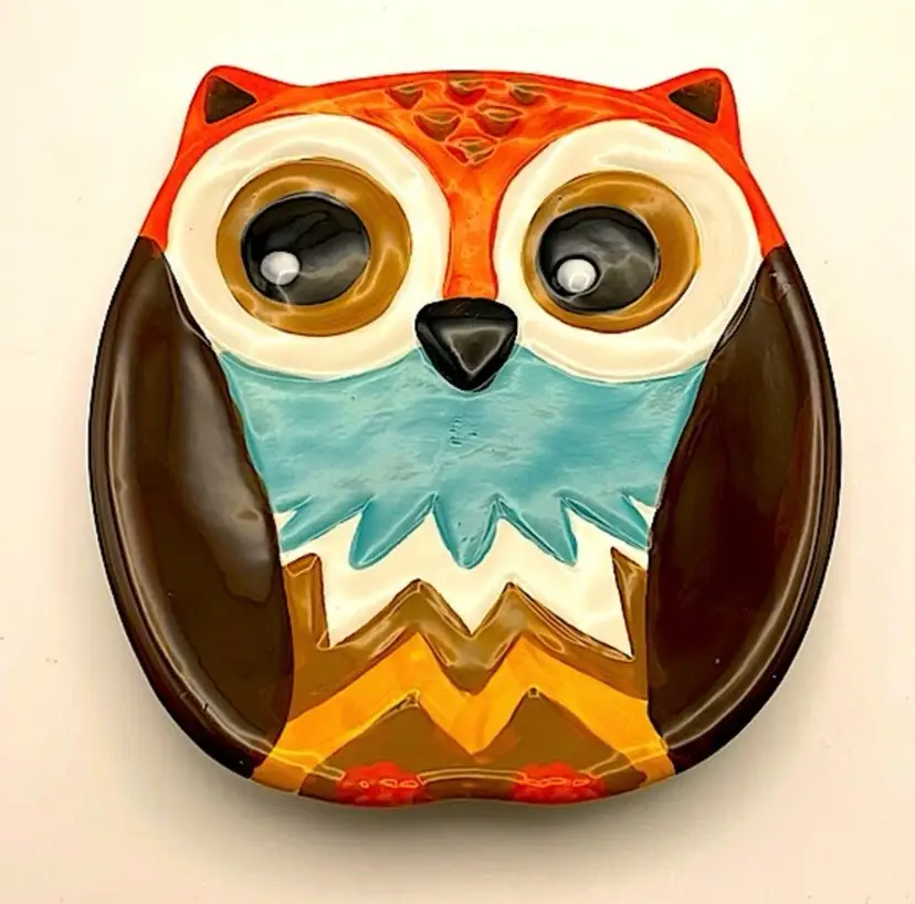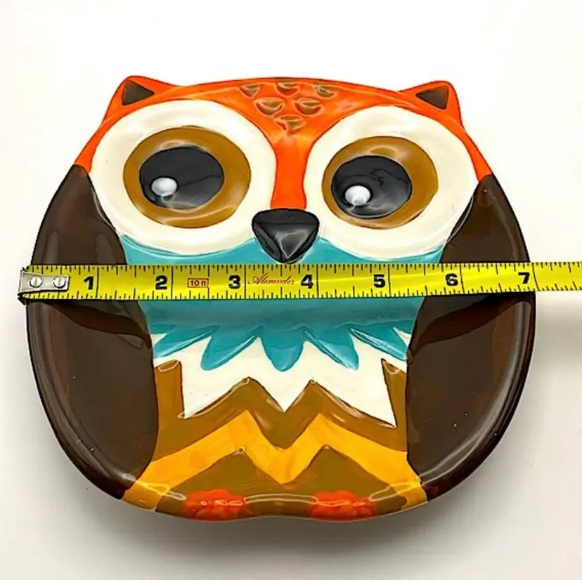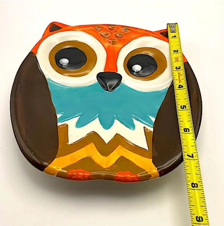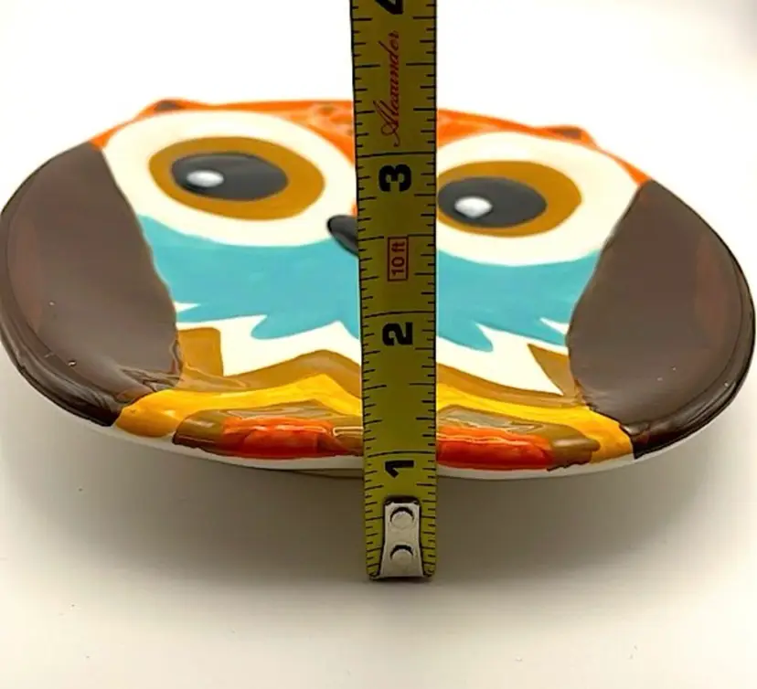 OWL, Colorful, Ceramic Spoon Rest, Trinket Dish, Candy Dish. Dishwasher and Microwave Safe. Please see pictures for measurements.