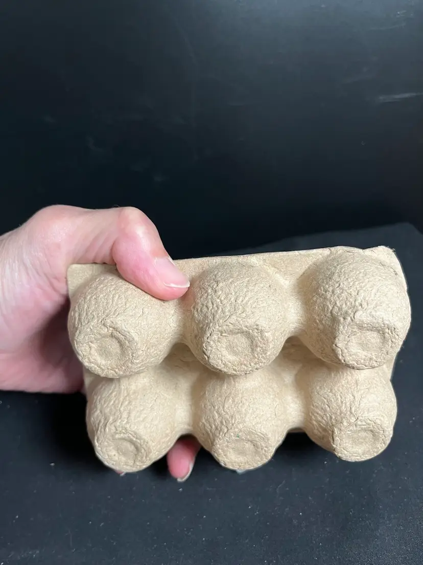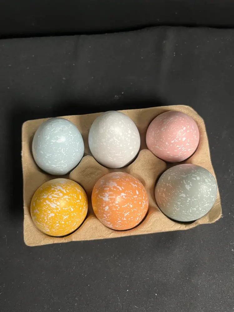 These are in mint condition. Each egg is approx 2.25", Carton measures approx 3" Deep, With eggs approx 2.5" H, 5" W, Together weighs Pre Packaged 5.8 Oz