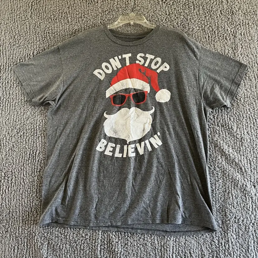 Pattern: Graphic Print Sleeve Length: Short Sleeve Character: Santa Claus Neckline: Crew Neck Size: 2XL Color: Gray Material: Cotton, Polyester Brand: Fifth Sun Fit: Relaxed Size Type: Regular Department: Unisex Adults Type: T-Shirt Theme: Holiday Country/Region of Manufacture: Mexico