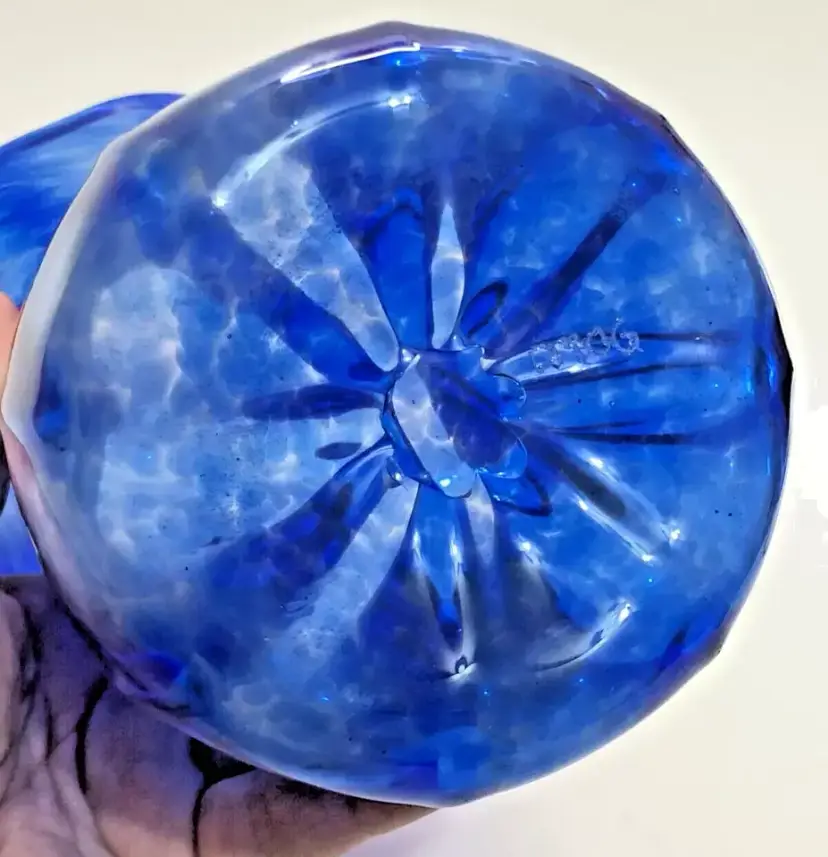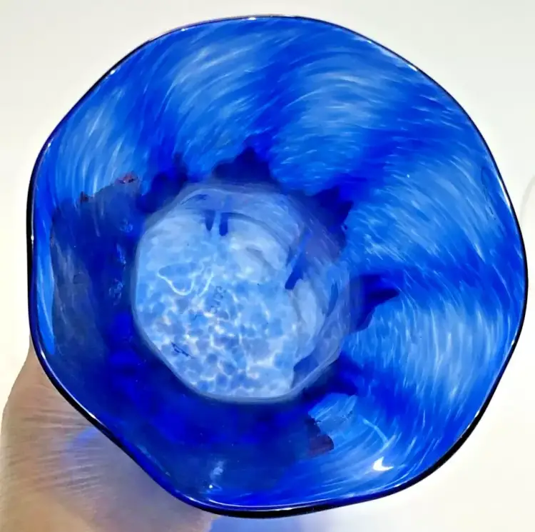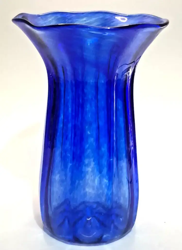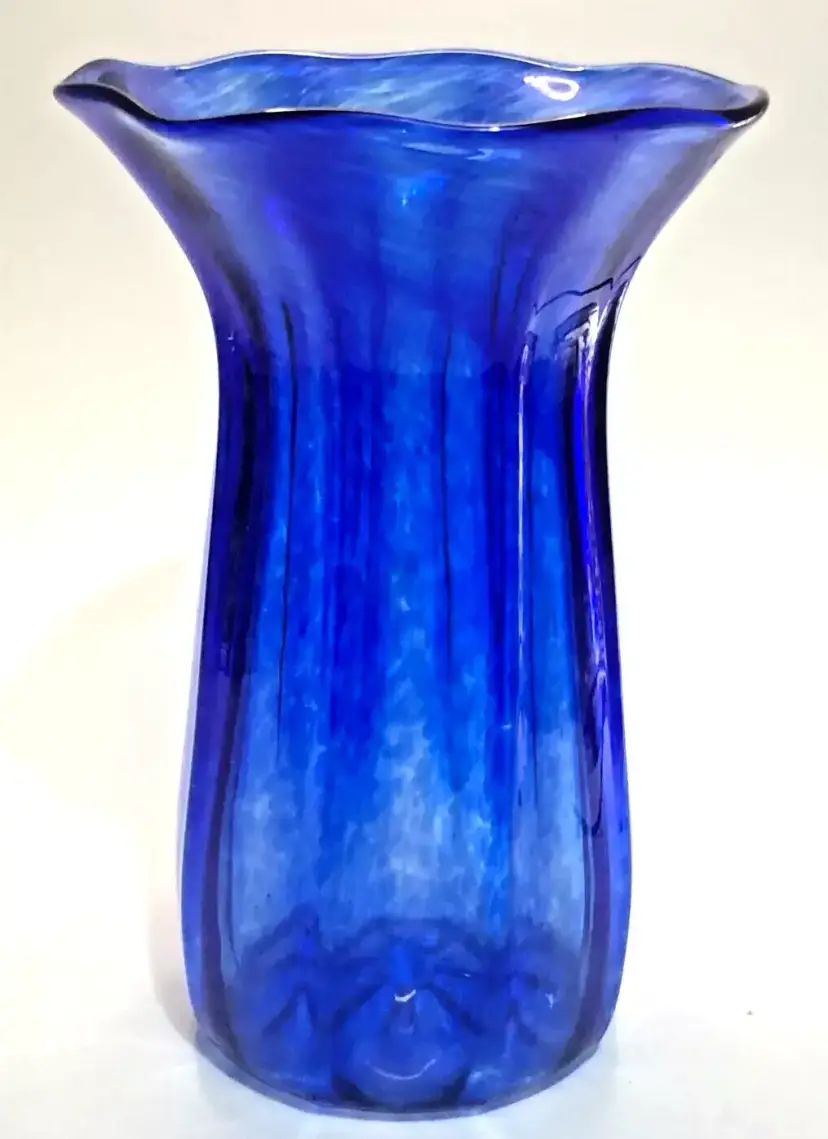 Awesome piece from the Corning Museum of Glass in NY. CMOG 9" Signed Cobalt Blue Swirled Glass Vase Paneled. Signed on the bottom. 4" diameter base. No chips, no cracks. Great condition.