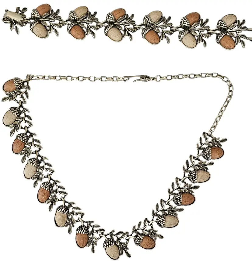 Coro Vintage 1950 Acorn Necklace And Matching Bracelet, L615