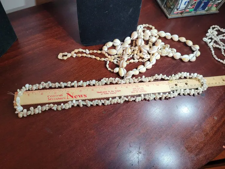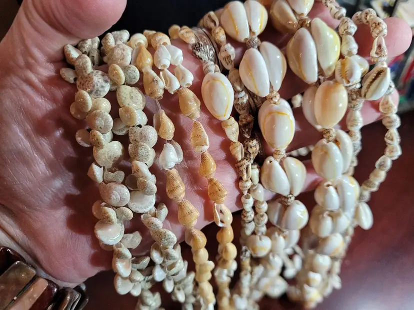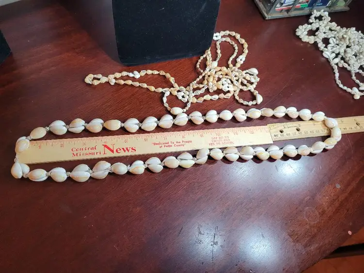 I have another 5 mixed SHELL necklaces about 32 inches long, no clasp, over the head style. Each one is different with some using big shells and others using tiny ones. And SEVERAL have a mix of big and small. These are fun and great. I have a couple of lots of them so check them out.