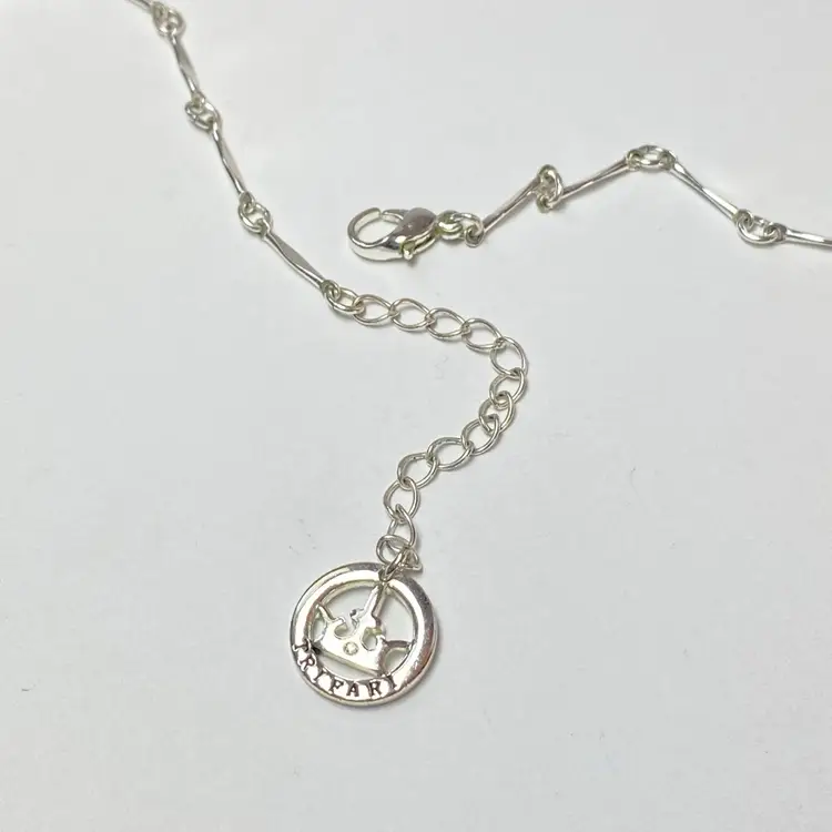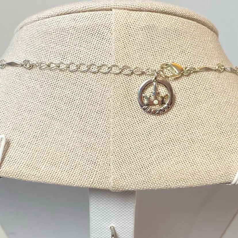 Add a touch of elegance to your outfit with this stunning Crown Trifari Silver Tone Marcasite Tear Drop Filigree Station Bar Chain Necklace. The station pendants are shaped like teardrops and feature a round marcasite stone. The necklace is made of high-quality materials and has a lobster closure for a secure fit. This necklace is perfect for any occasion, whether it's a formal event or a casual day out. It has a unique style that combines beauty, family & friends, vacation, love, retro, and fashion & costumes. The necklace is also adjustable, making it a great choice for people of all sizes.