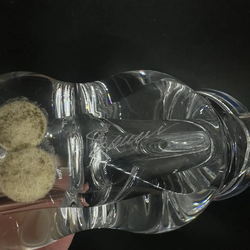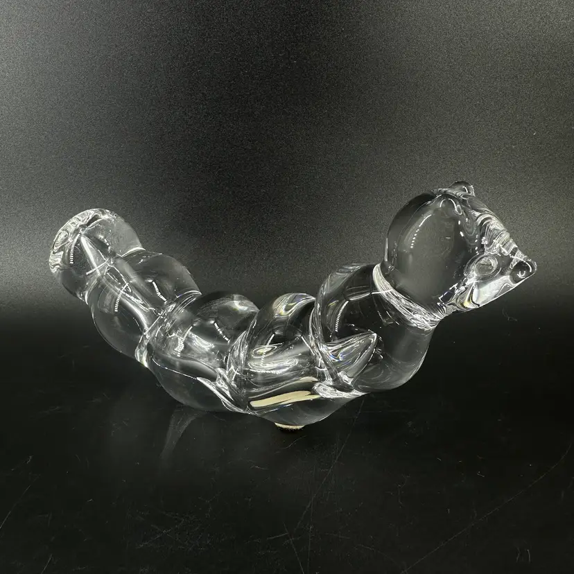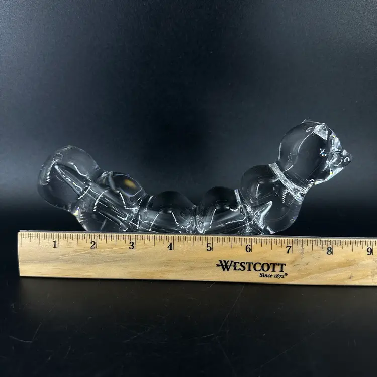 Crystal caterpillar figurine has an engraved “VILCA” signature on side and engraved illegible signature on bottom. No chips or cracks. Measures approximately 9” long.