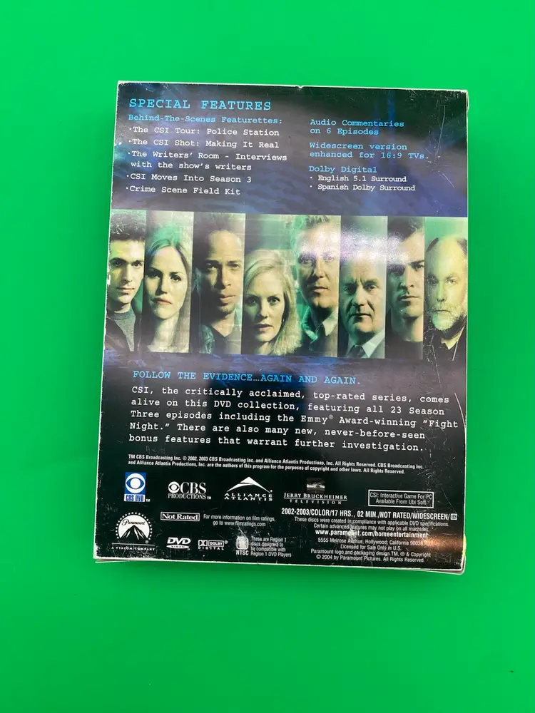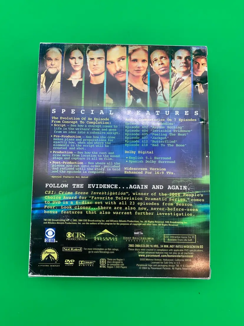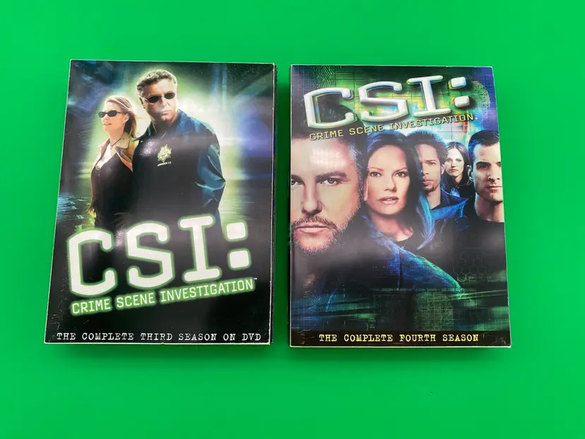 You are purchasing a pair of CSI: Crime Scene Investigation DVD Season Sets by Paramount Pictures. Each Set contains 6 Discs. This Listing Includes the Third and Fourth Seasons; 2002-2004 Series, 2004 DVDs. These Sets are in overall great condition. Complete with all Discs and Slipcovers. Discs are in great condition with minimal signs of wear.