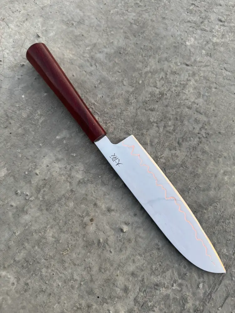 13 inches over all length blade 8 inches with wood handle it come with leather sheath.