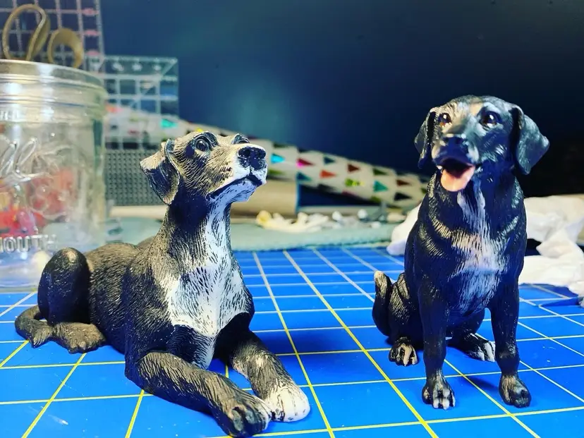 I can paint your pets in miniature form! I will need time after purchase to locate a toy that looks most like your pet and to repaint them with their specific markings! These are a few that I’ve done of my own pets (NOT FOR SALE). If you already have a toy that would work you can ship to to me to repaint along with emailing me photos of your pets and all of their markings at FairyFindr@gmail.com