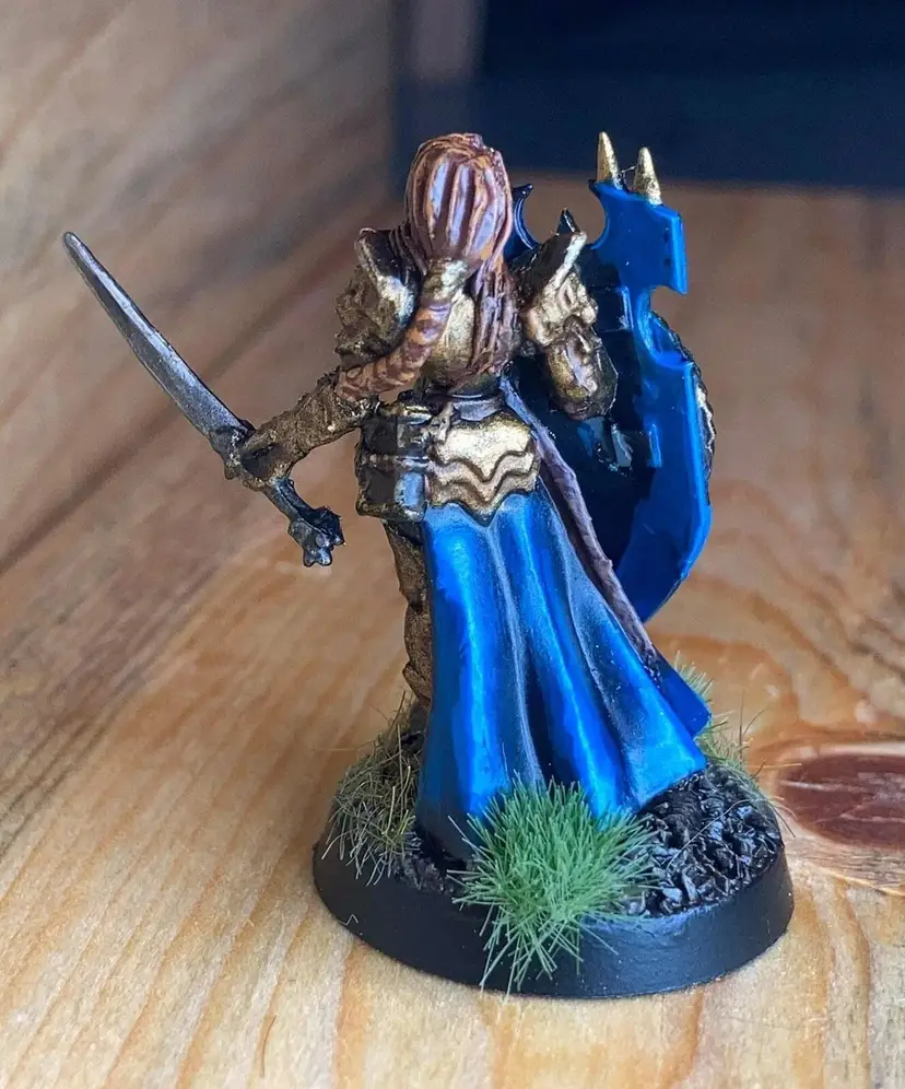 This mini is moderately modified with a fresh face, sculpted hair, and a terrifying shield.