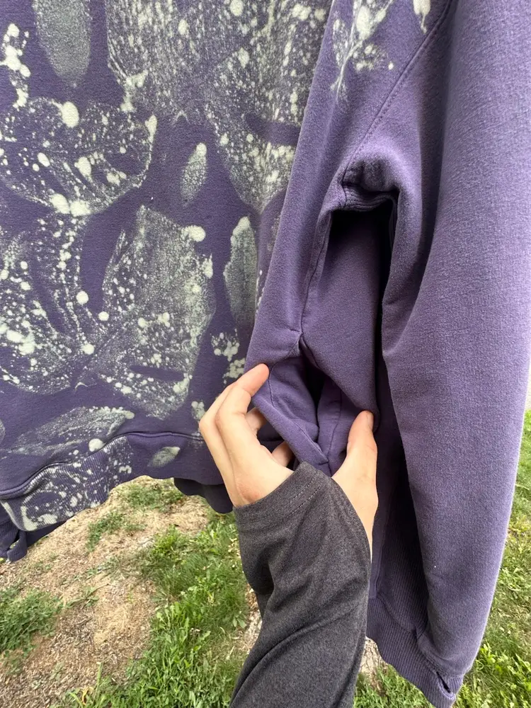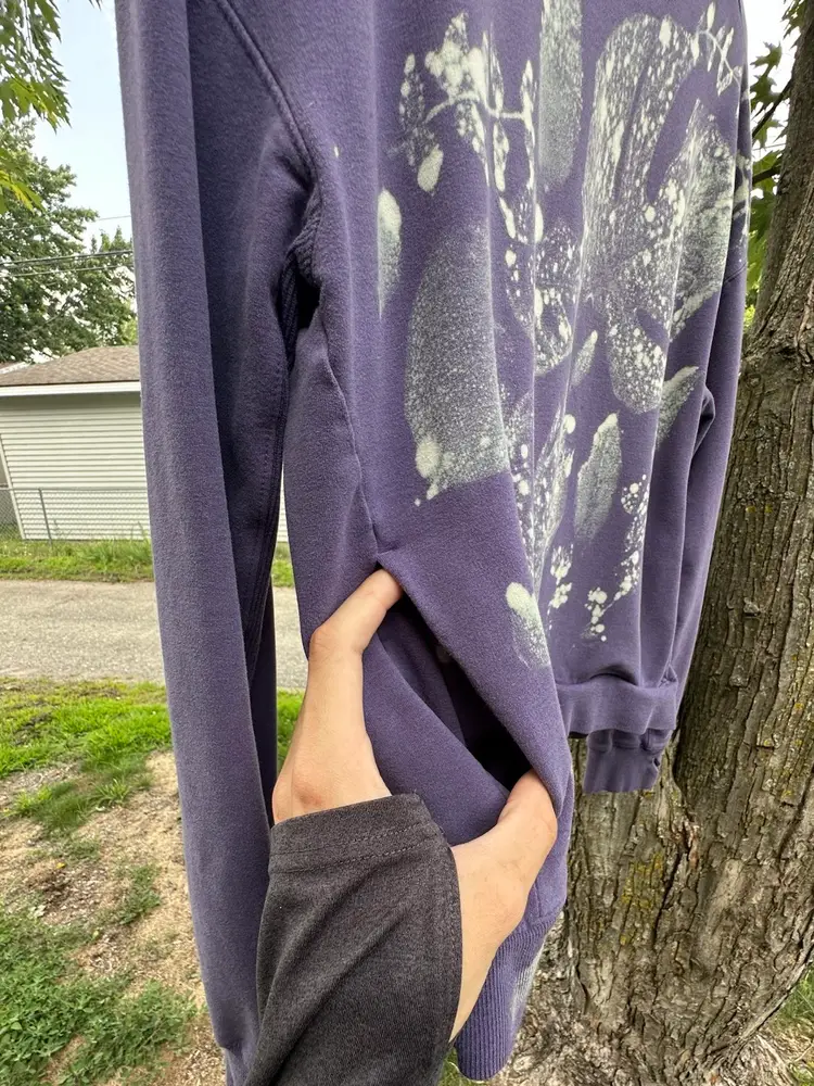 Thrifted sweatshirt, uniquely custom-designed with fresh plant cuttings from my personal collection, creating a natural and artistic look.
