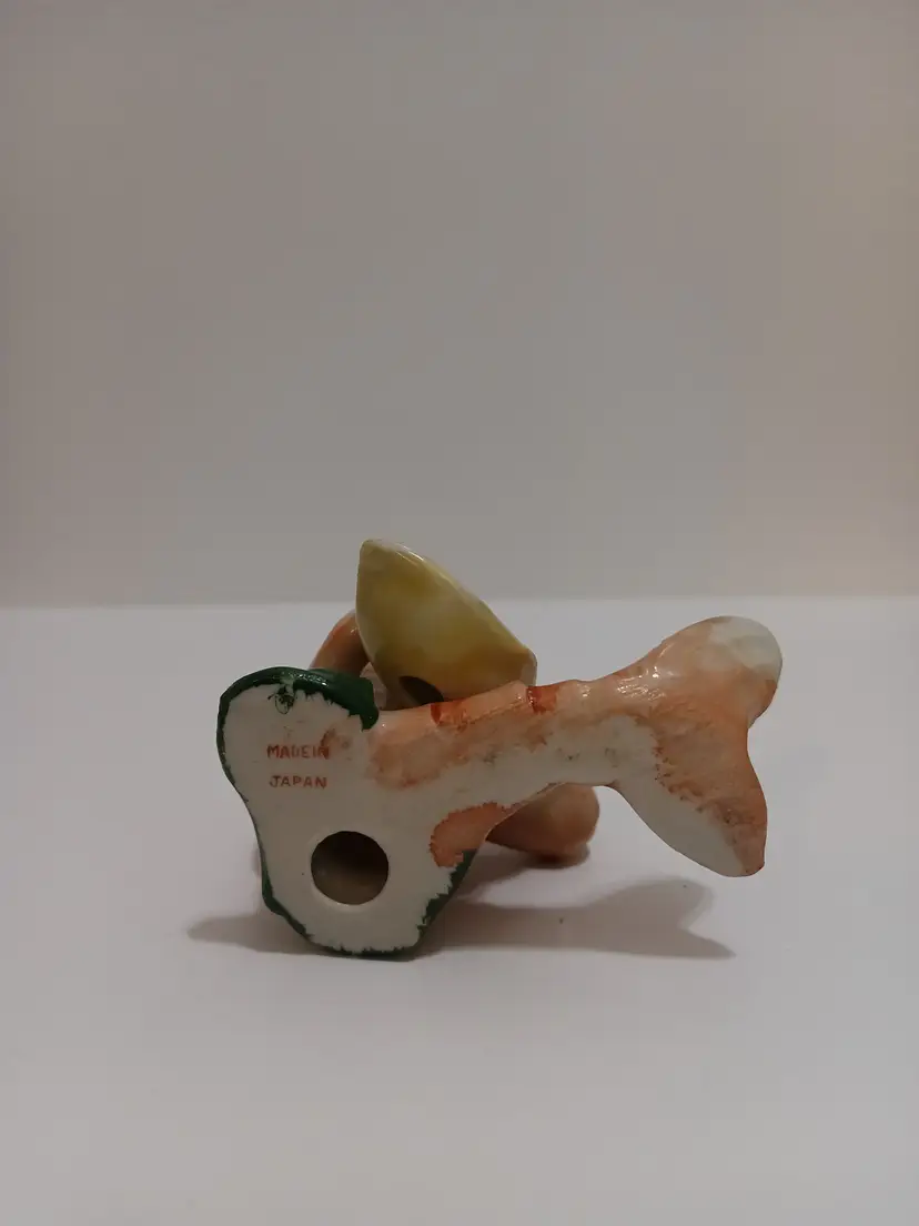 What a Funny Little Crawdad/Shrimp Strumming a Shell! This Cute Anthropomorphic Figurine Will Bring A Smile To Anybody's Day! Marked Made In Japan; 3" T X 3" W X 3.25" Base; No Chips or Cracks or Crazing!