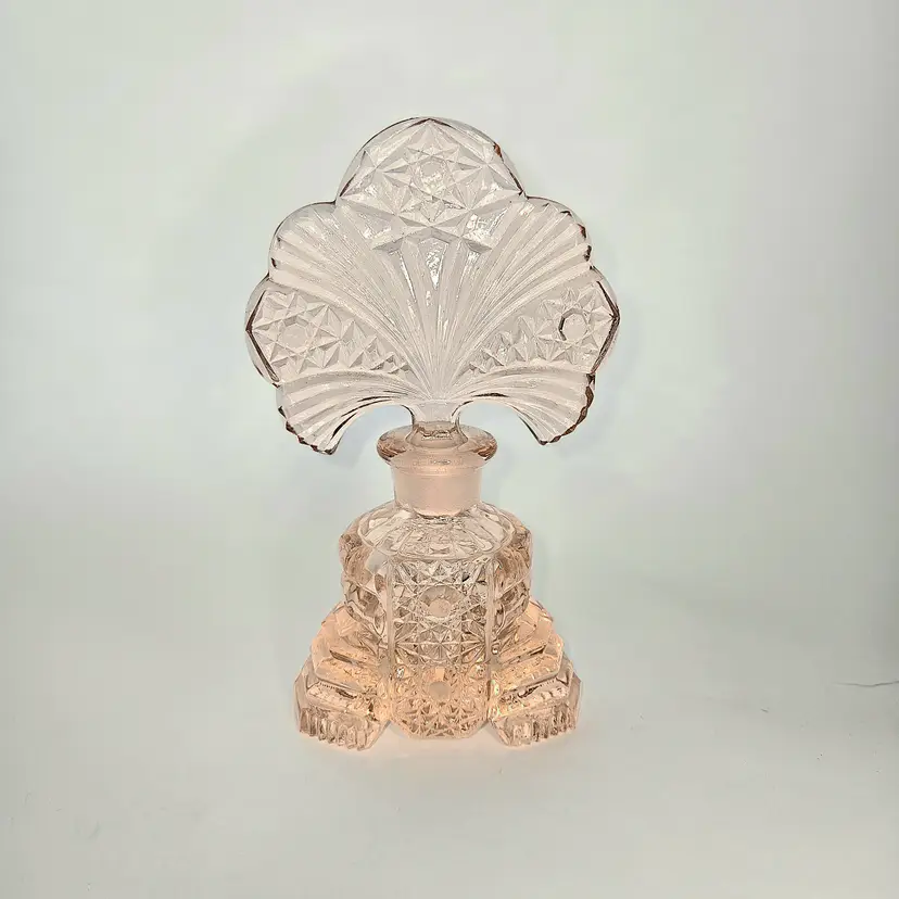 Stunning Pink Crystal Czech Bohemian Perfume. Flawless. Art Deco style. Vintage. No fleabites, chips, cracks, or repairs. Never used, no odor.