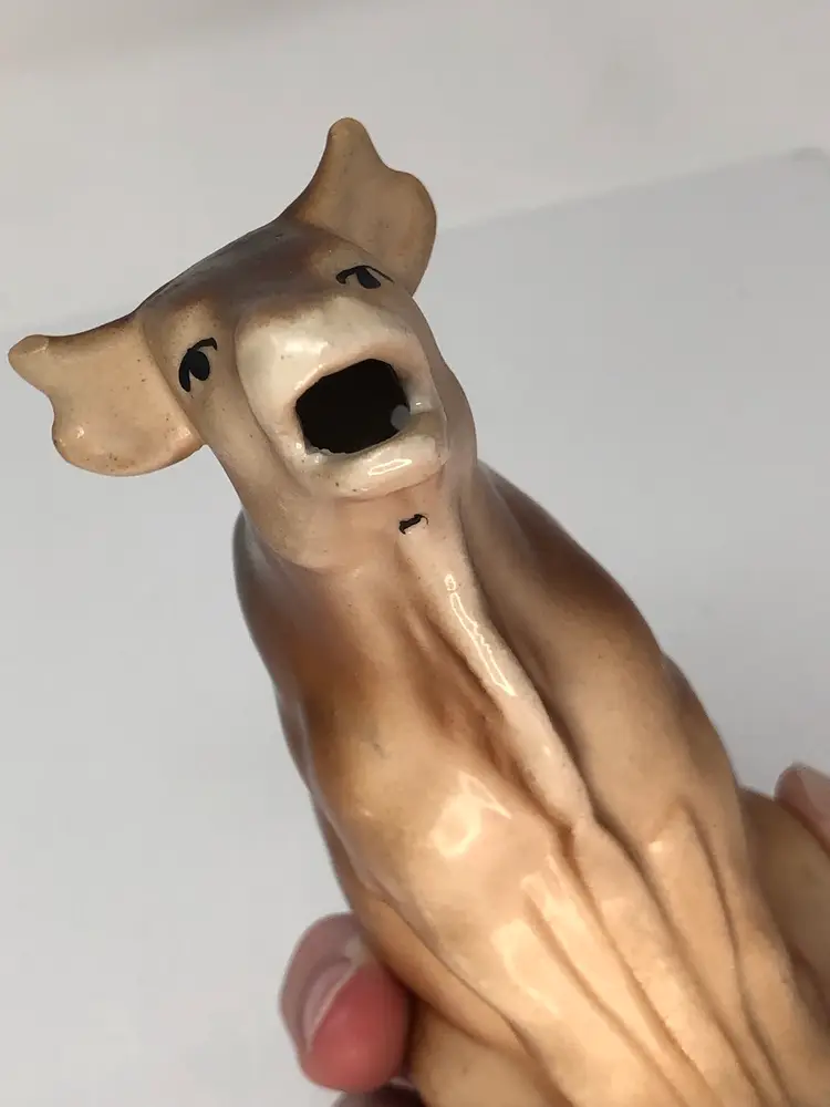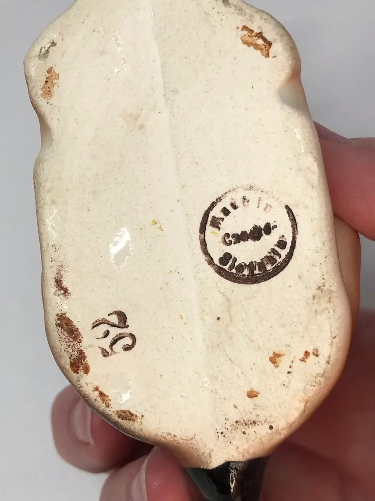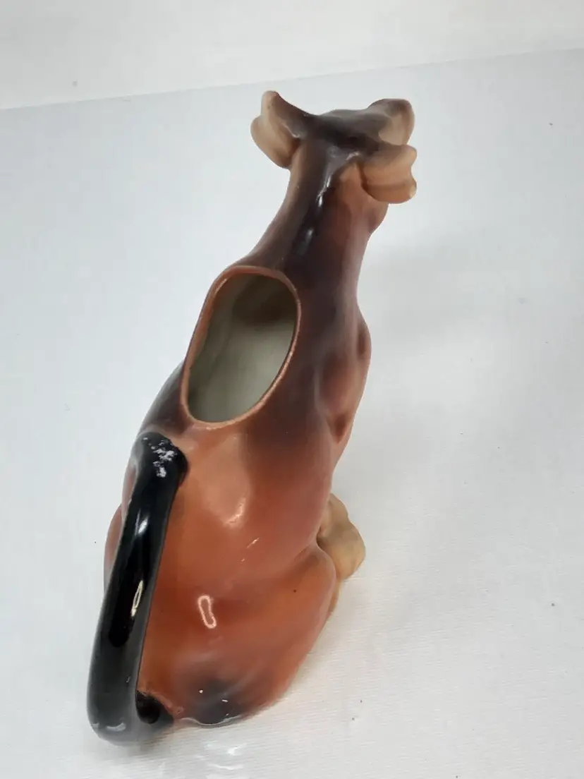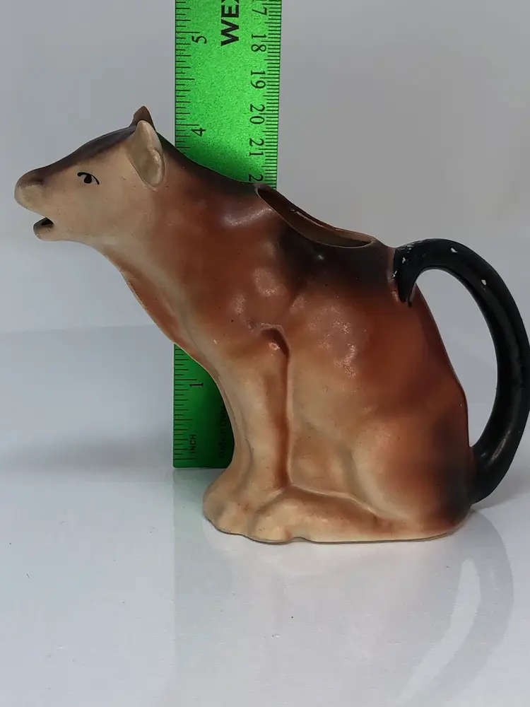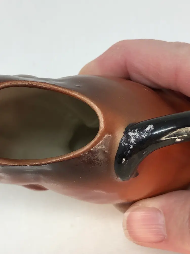 6" ceramic creamer stamped on the bottom Made in Czechoslovakia 52. Small chip on the base and some paint loss on the tail/handle as shown in photos
