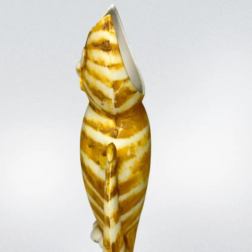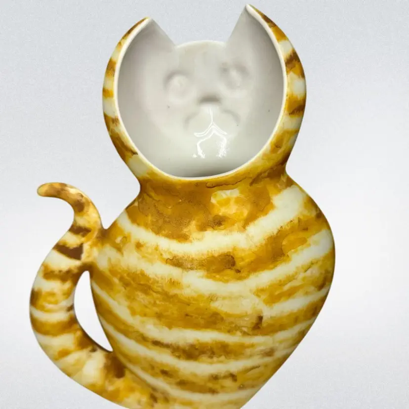 This Ginger Tabby Cat is adorable and made by Dalton Pottery and the makers mark is on the bottom. Great detailed features! Measures 9" x 6 1/2" x 2 1/2". Can be used as a decor piece or a vase.