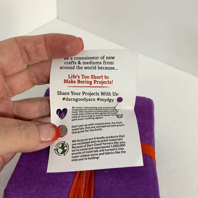 These are hand dyed and made from reclaimed and recycled materials. Weighs 7 ounces. If the actual postage ends up being less than what you paid, you will be refunded for anything over one dollar.