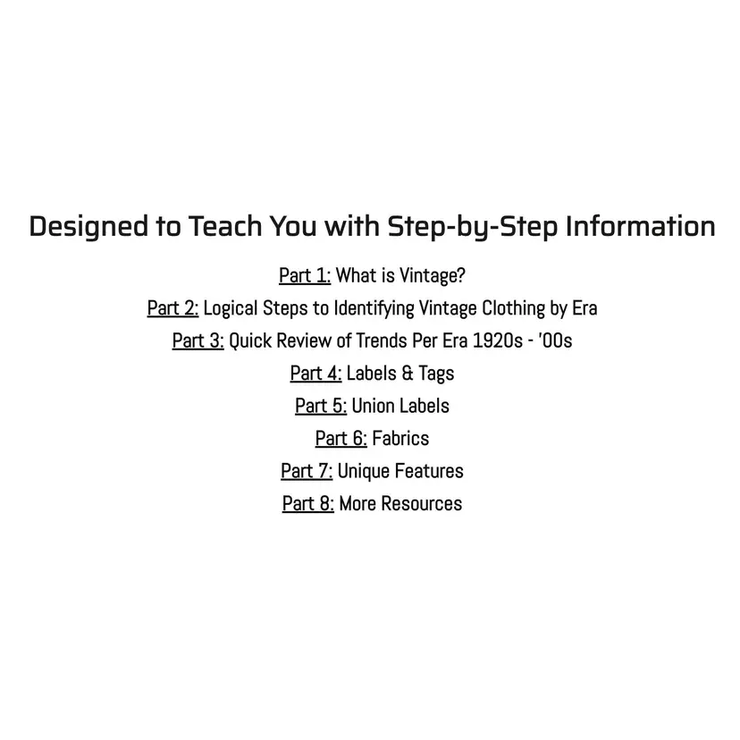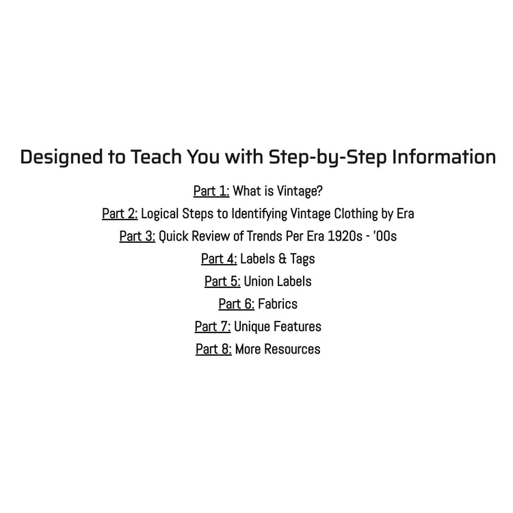 The 35 page + educational resource helps you to understand all the ways to date the age or time period of your vintage clothing clothing.