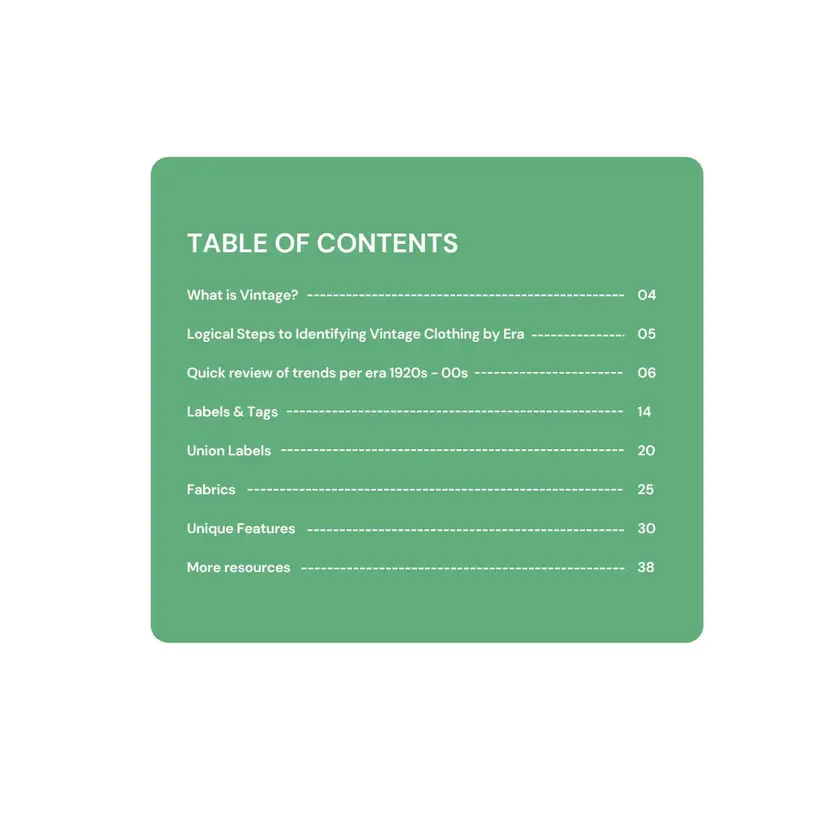 The guide includes additional resources, so you can increase your wealth of knowledge and more accurately date, describe and experience your vintage clothing collection.