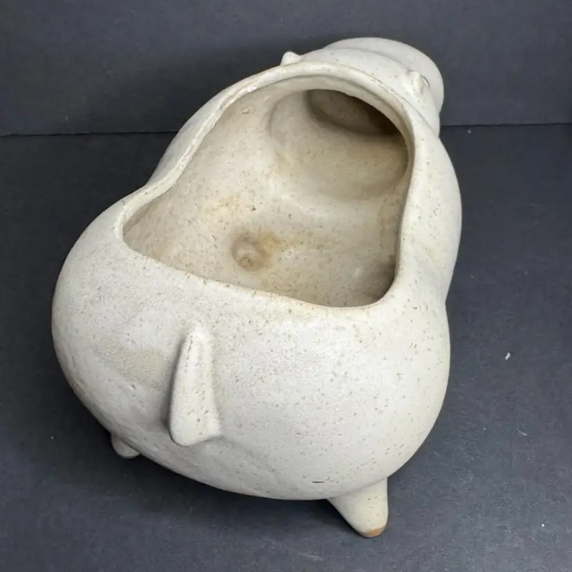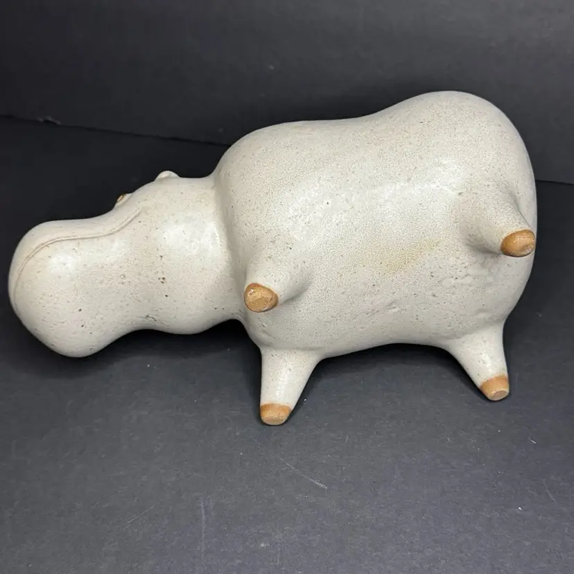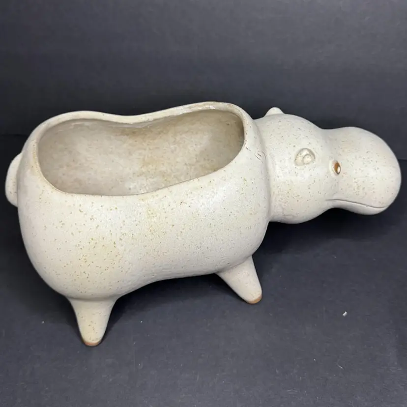 David Stewart is a well known California potter who created many unique animal figurines/planters/containers. This cute hippo is in great condition measuring 10 1/2" x 5 1/2" x 5". He is a big fella and could easily be used for a house plant. He has no chips or cracks.