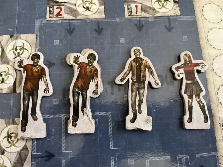 Was purchased used like new but a few zombie standees had damage. See pictures. Otherwise it’s in excellent condition including the box. Comes from a smoke free home.