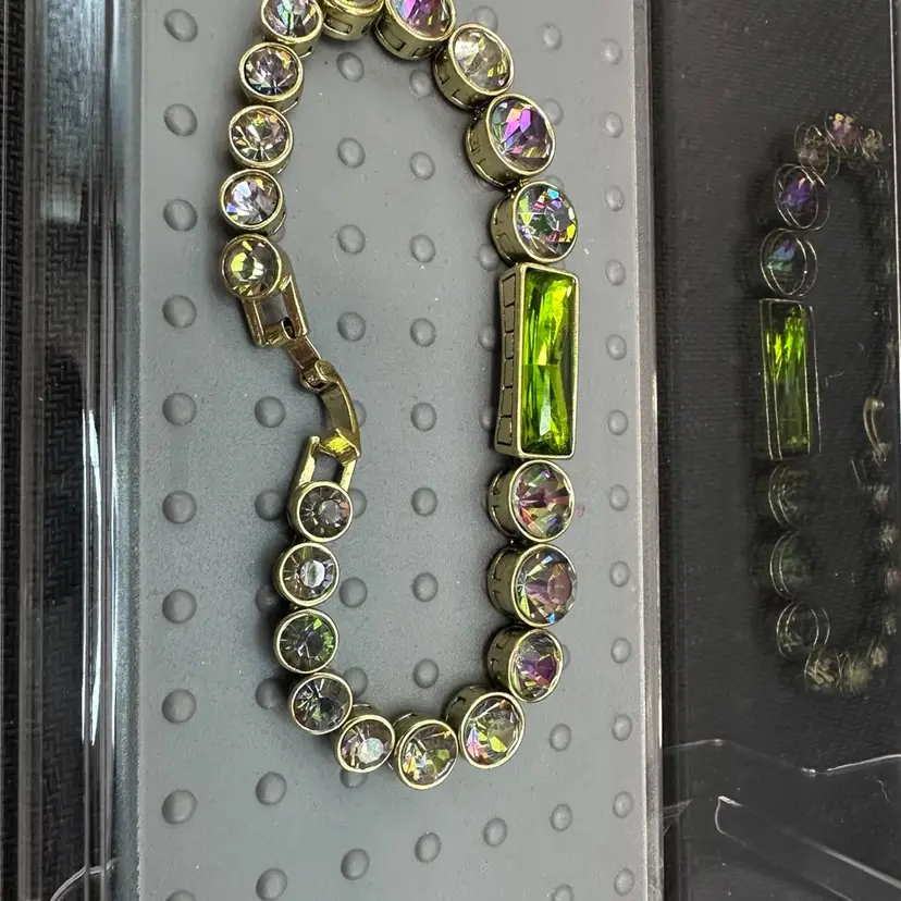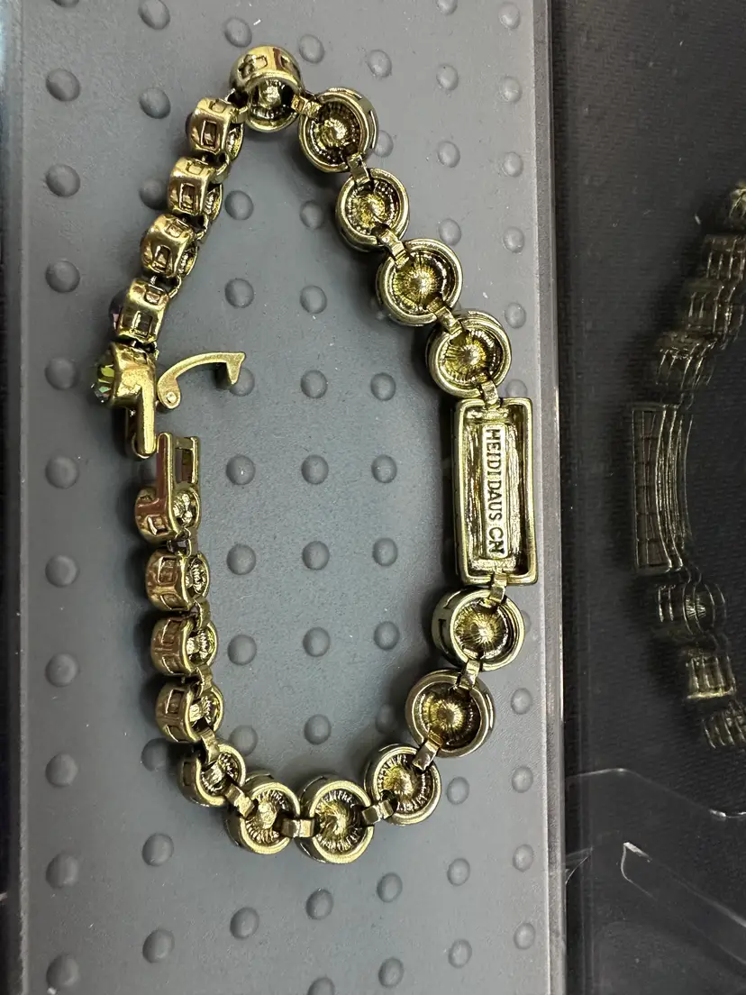 Heidi Daus Tennis Bracelet Gold Vintage Signed Crystal - AB Stones 7.25