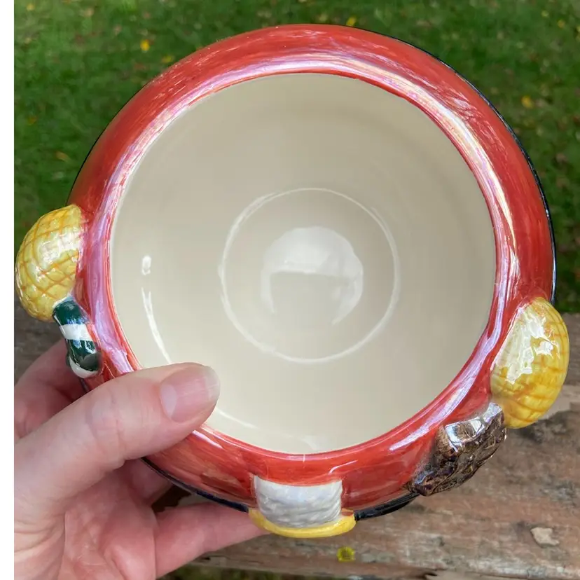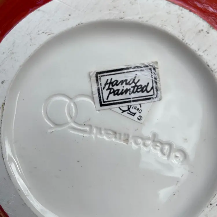 Approx 8.75”h x 7”w. No chips or cracks. Pre-owned condition. Last image shows smooth paint, not a chip or crack. All images are part of the description. I removed a lot of tape residue but some remains.