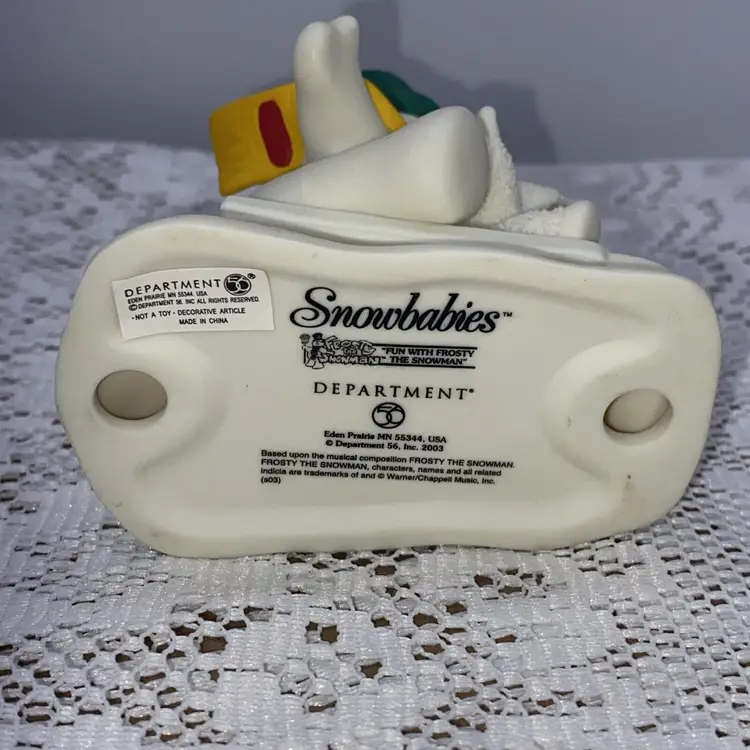 Occasion: All Occasions Color: Multicolor Material: Porcelain Subject: Snowman Brand: Department 56 Type: Figurine Department: Adults Collection: Snowbabies Original/Reproduction: Original Theme: Seasonal Features: Retired Time Period Manufactured: 2000-2009 Character Family: Frosty