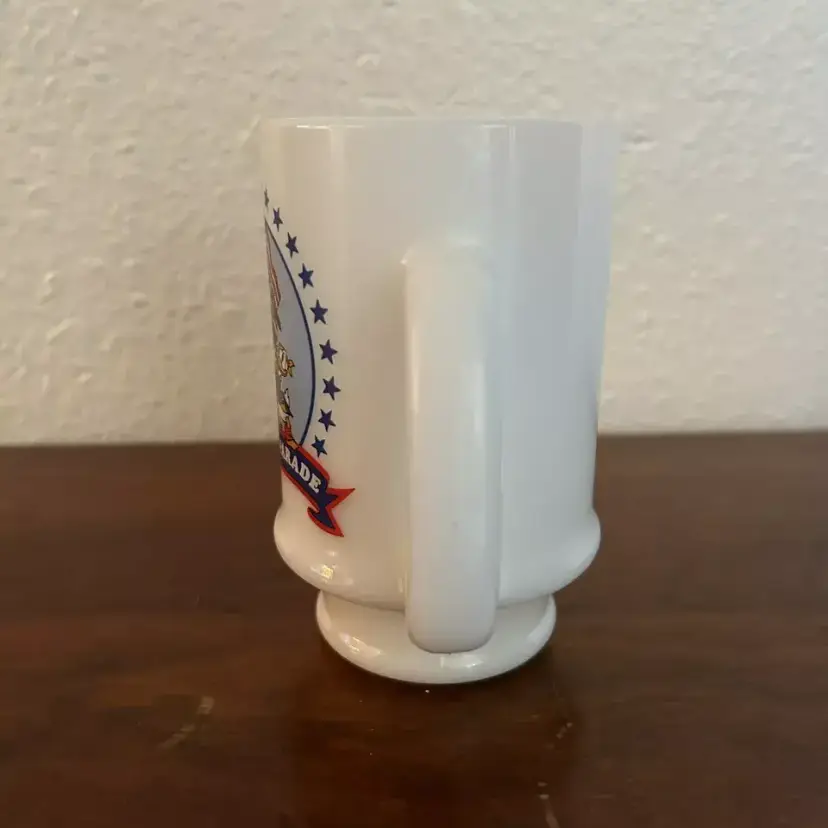 Disney Glass Vintage America Parade Milk Glass Coffee Mug Mickey Donald Duck Goofy