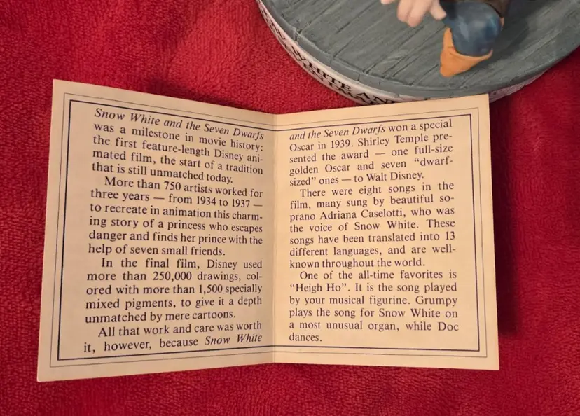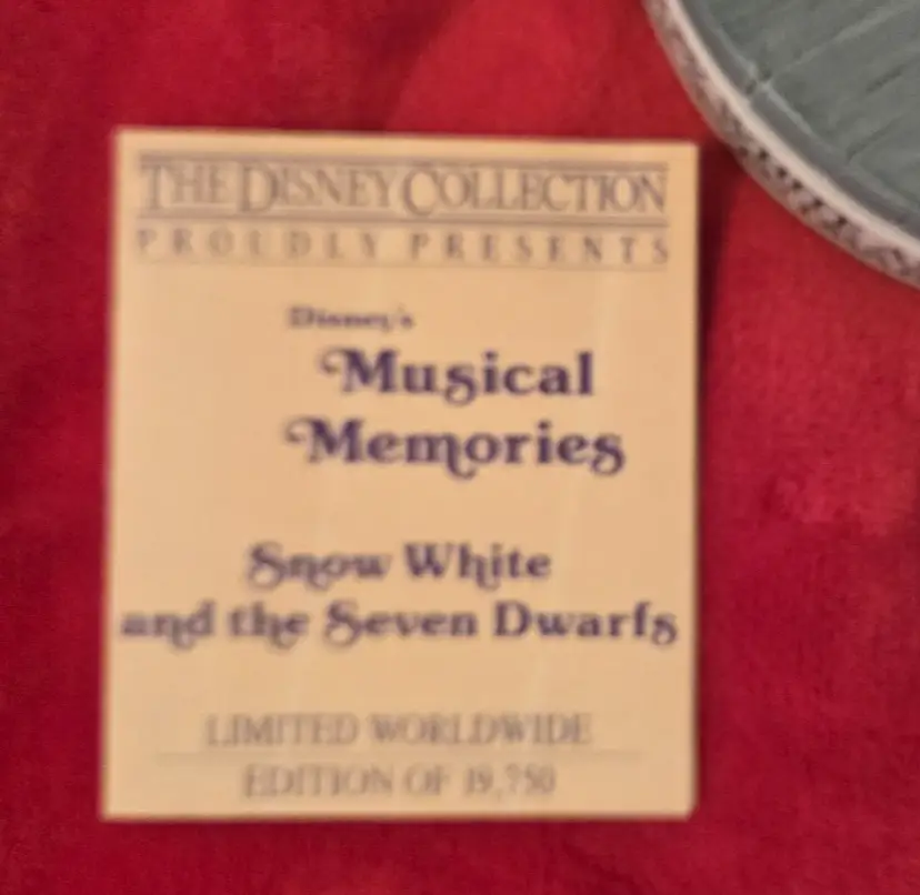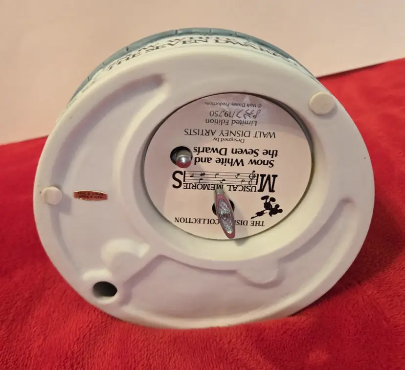 From 1985 - Disney's Musical Memories Snow White And The Seven Dwarfs Ltd Edition 8337/19750 music box - tested and working Stands about 7.5 inches tall