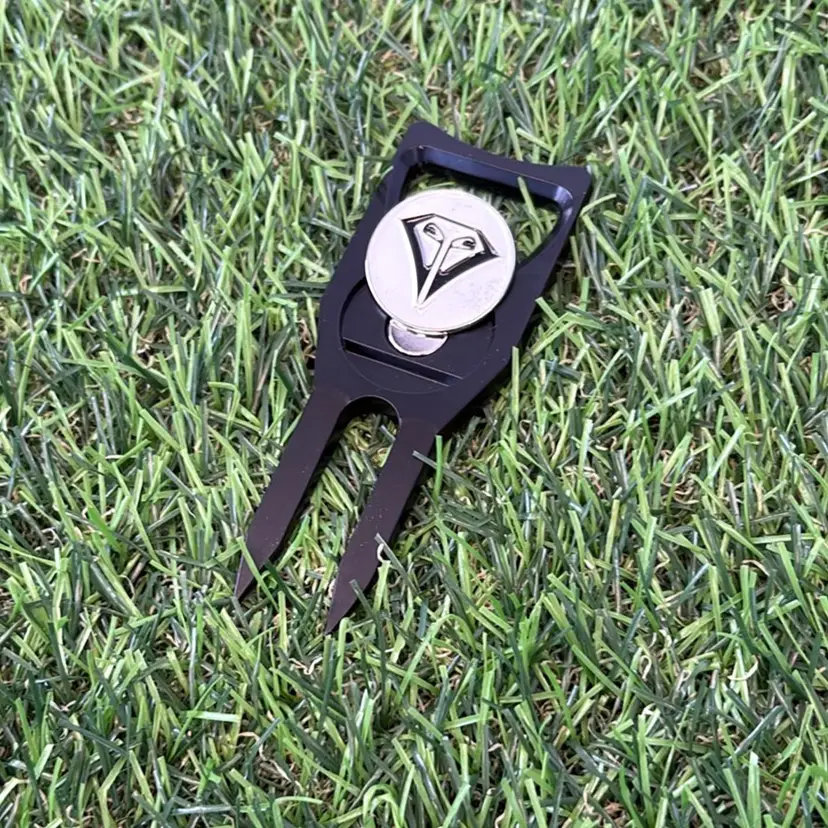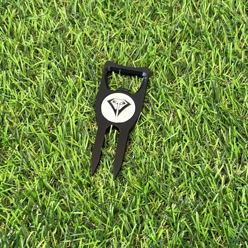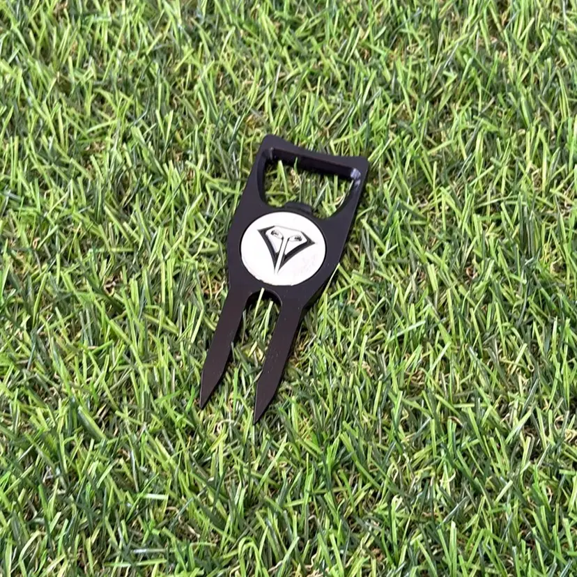 Magnetic Divot Tool is multifunctional. To include: -fix ball marks -bottle opener -putting alignment aid -club stand -ball marker