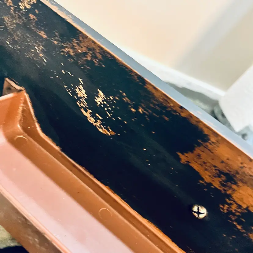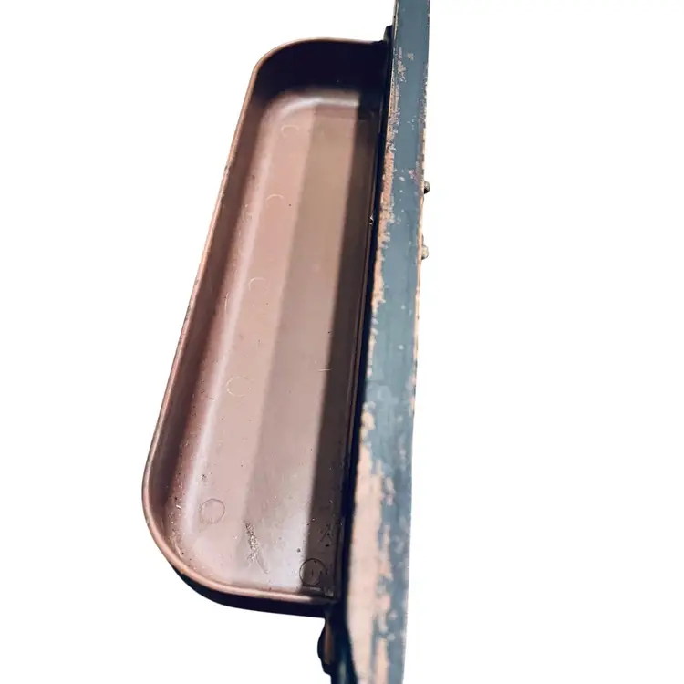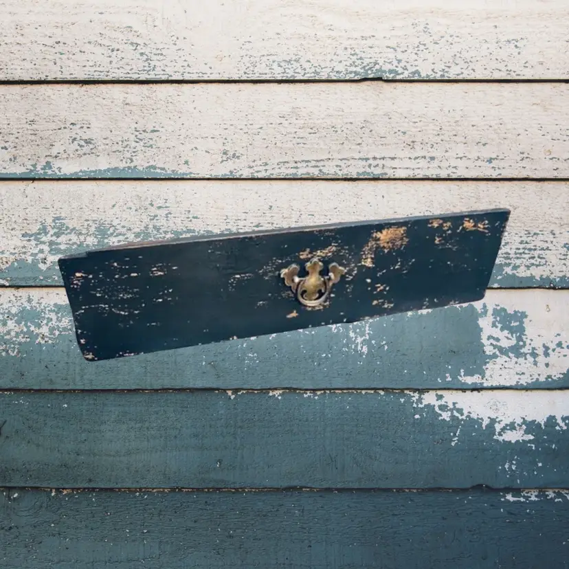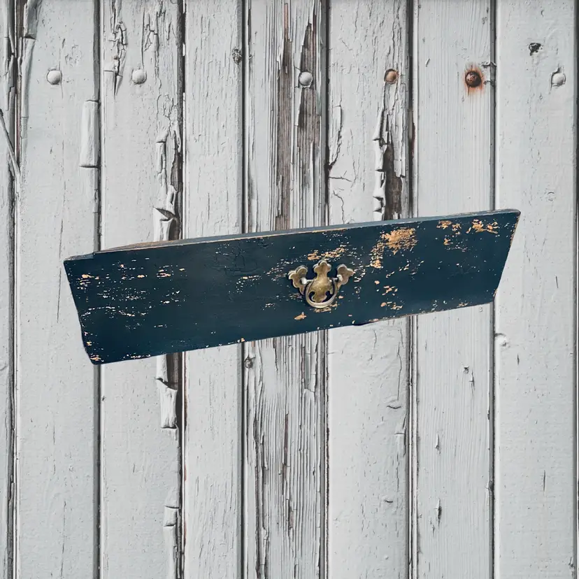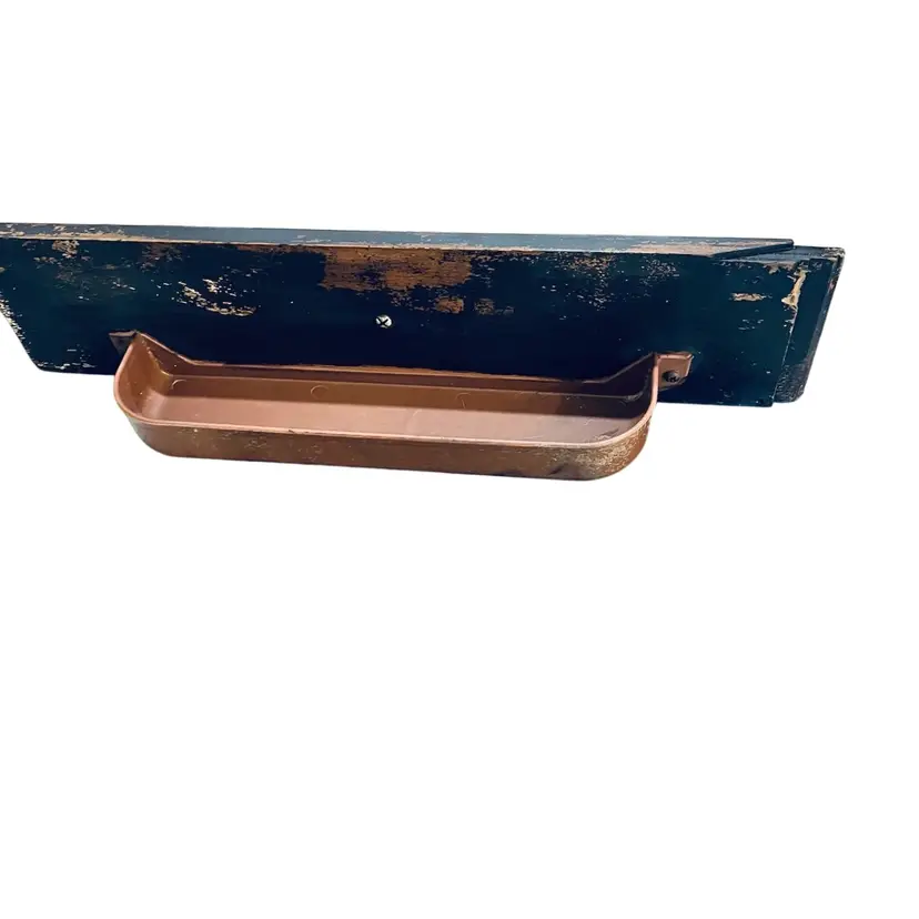 This came off an old kitchen drawer . It is a salvage piece. Hand painted by me and sealed You could use this as decor or plant your favorite faux greenery utilizing the attached plastic tray on the back of this Very rustic and primitive Indoor use only Painted with milk paint. Approx 18” long 4” tall