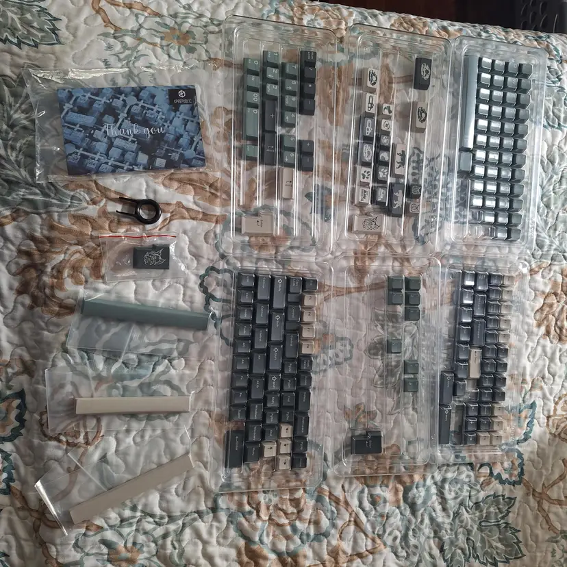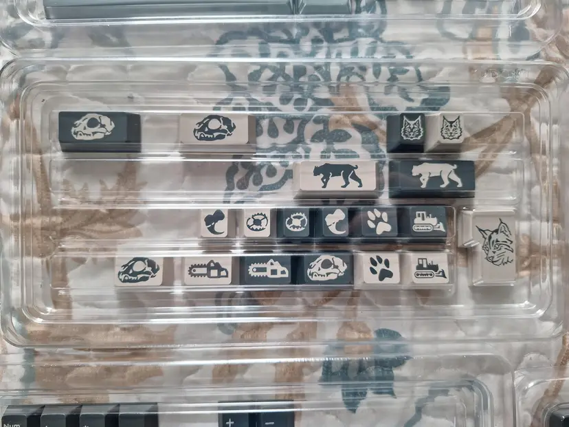 Domikey X iNKY Silent Forest Cherry Profile Keycaps. Kits: -Double-shot Alpha Base kit -Novelty Kit -Numpad kit -ISO kit Barely used, excellent condition. Kits are not sold separately.