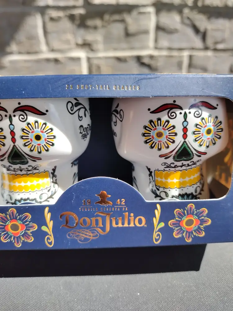 Don Julio Tequila Skull SHOT GLASSES Day of the Dead Floral Limited Edition NEW.